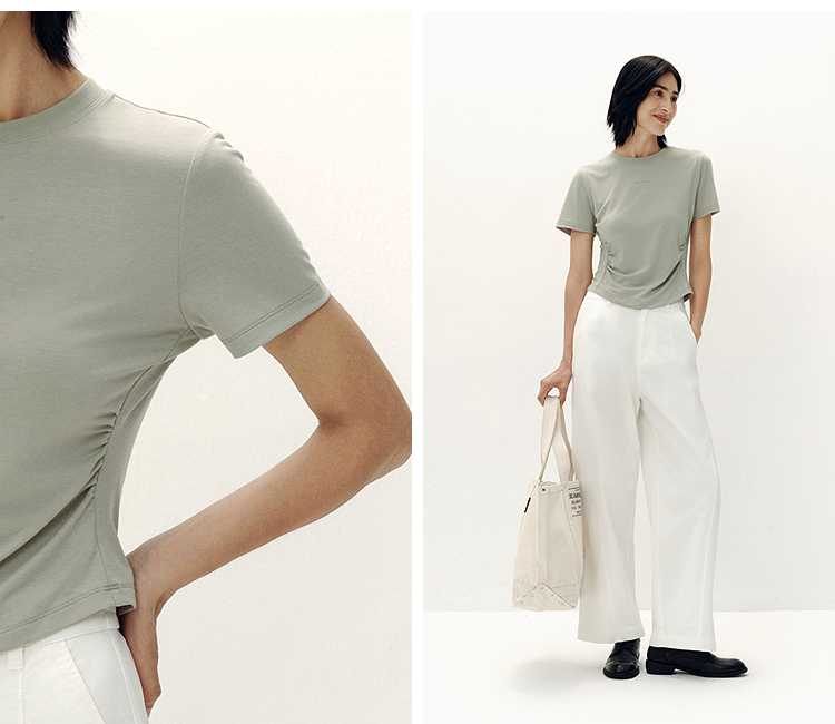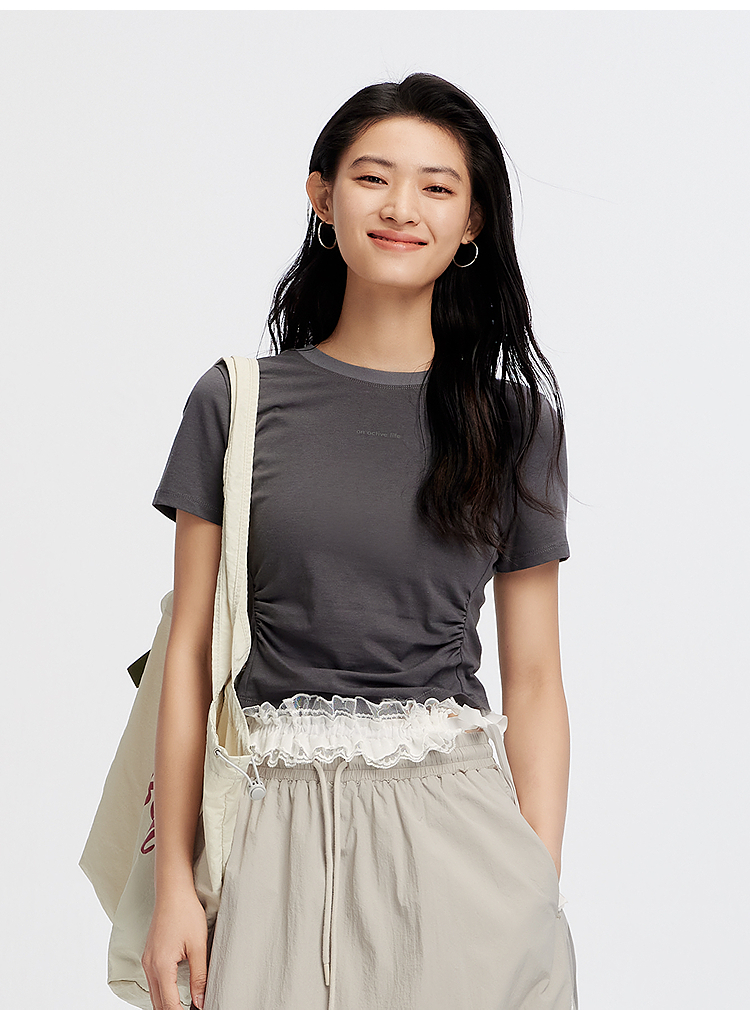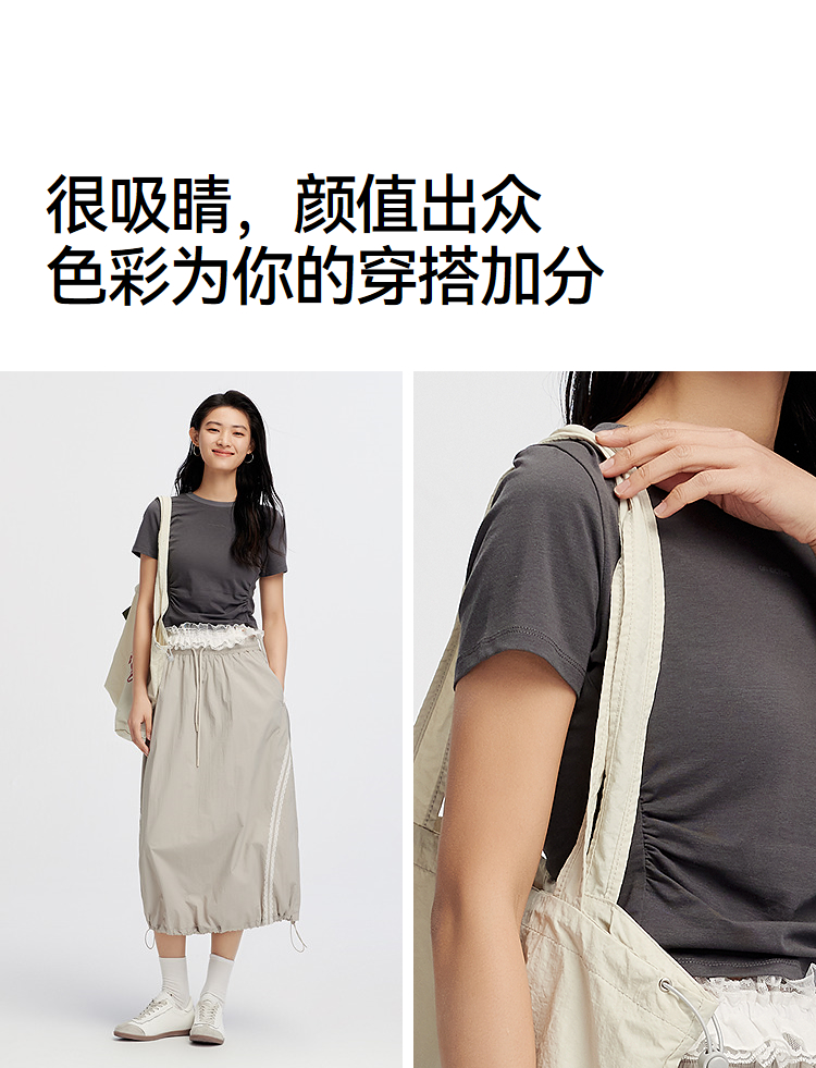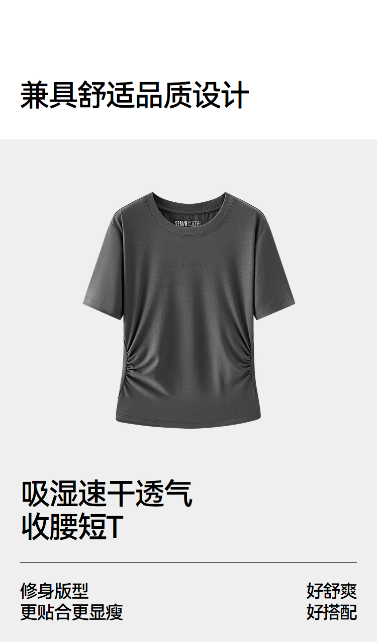 [商场同款]森马短袖T恤女短款收腰吸湿速干2025夏季新款修身衣服