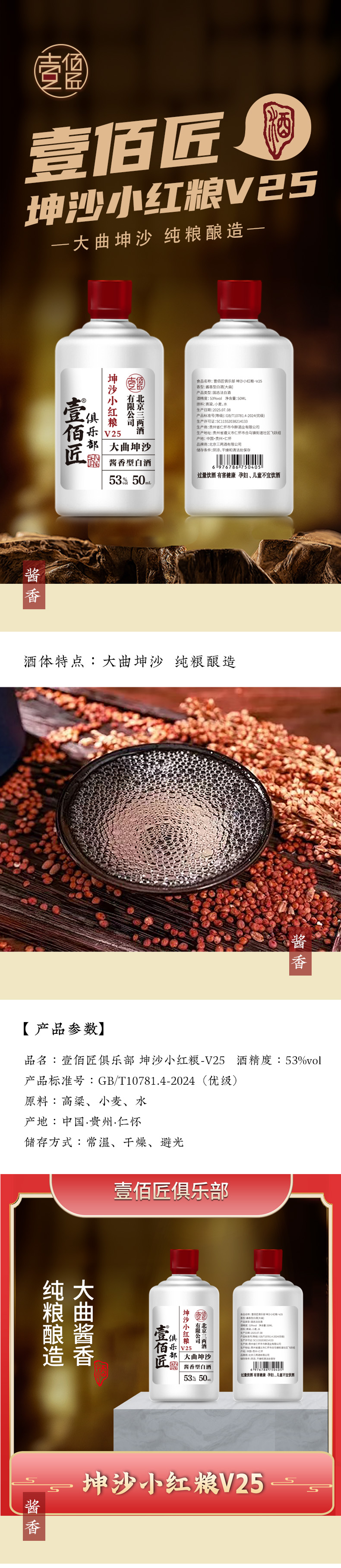 【三两】酱香53度-【25年小红梁-50ML】-单瓶装