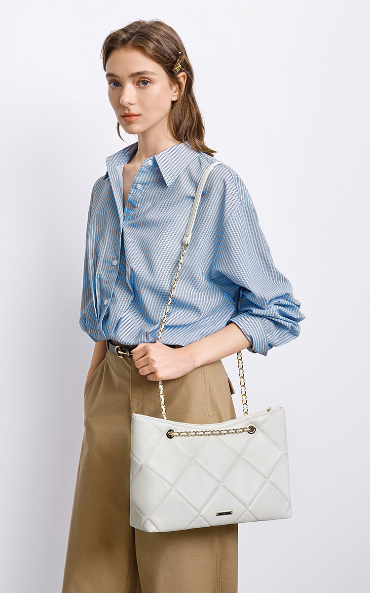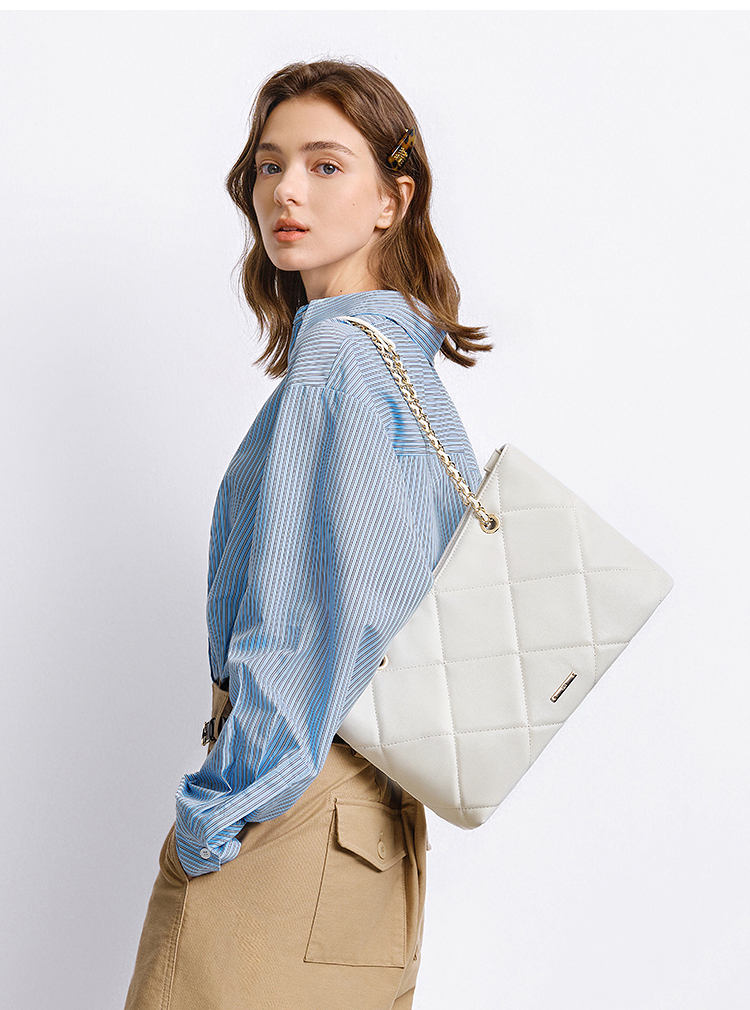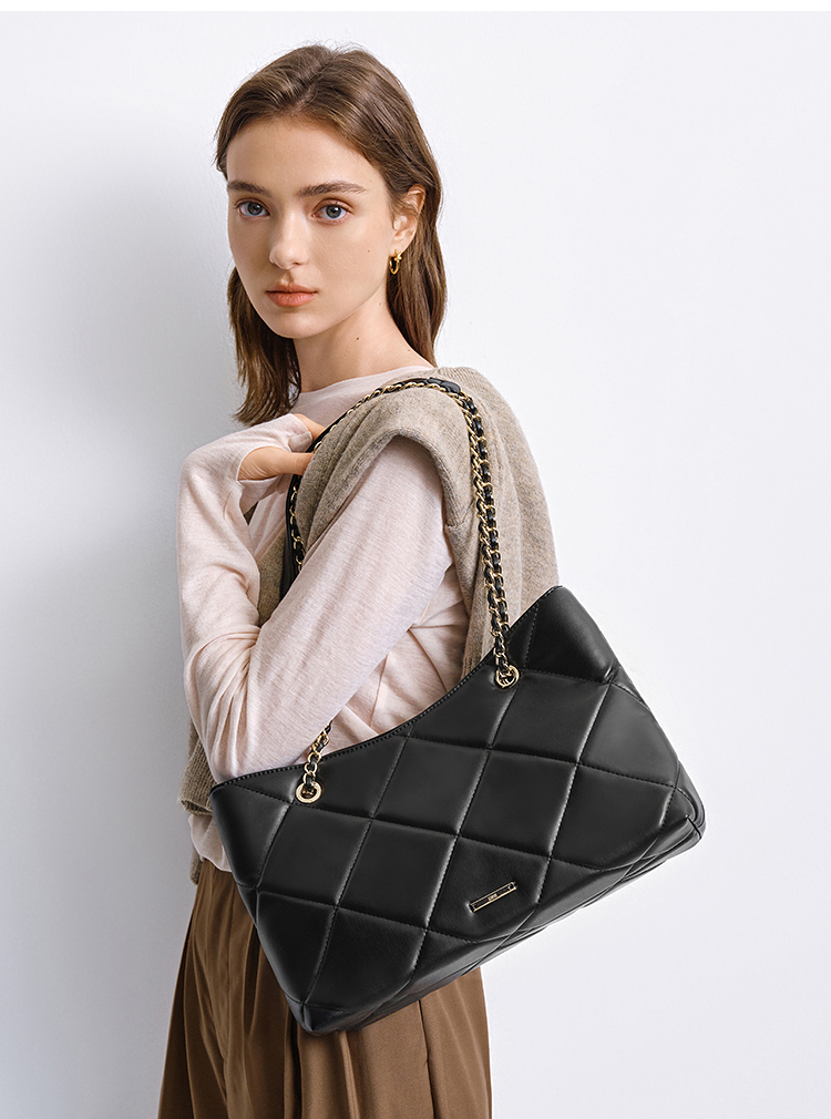 森马包包女托特包菱格链条包大容量斜挎包2025新款单肩包通勤质感