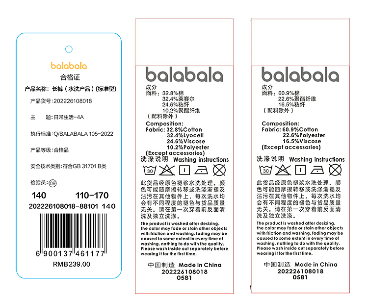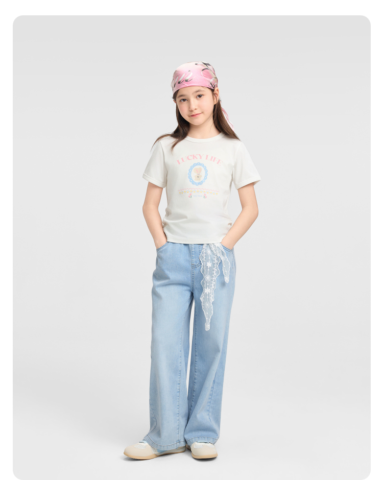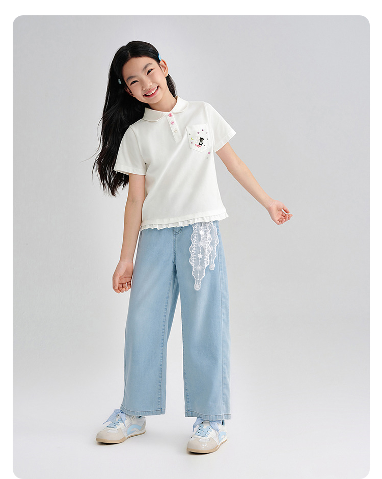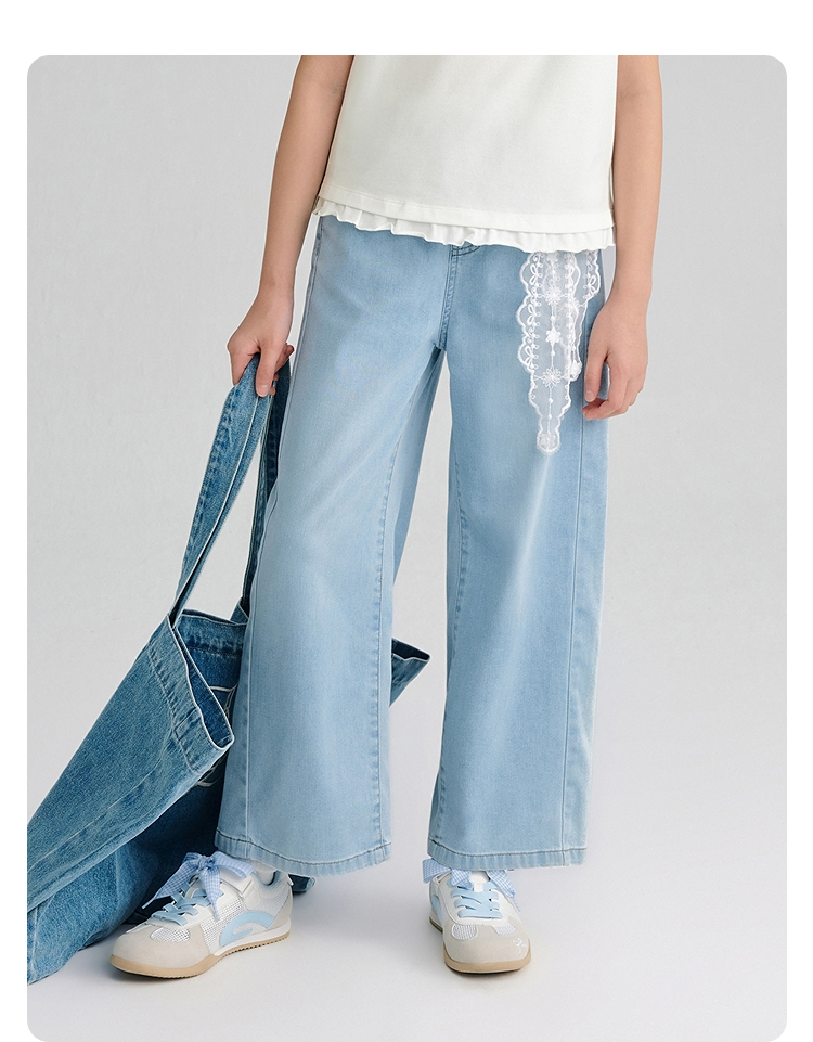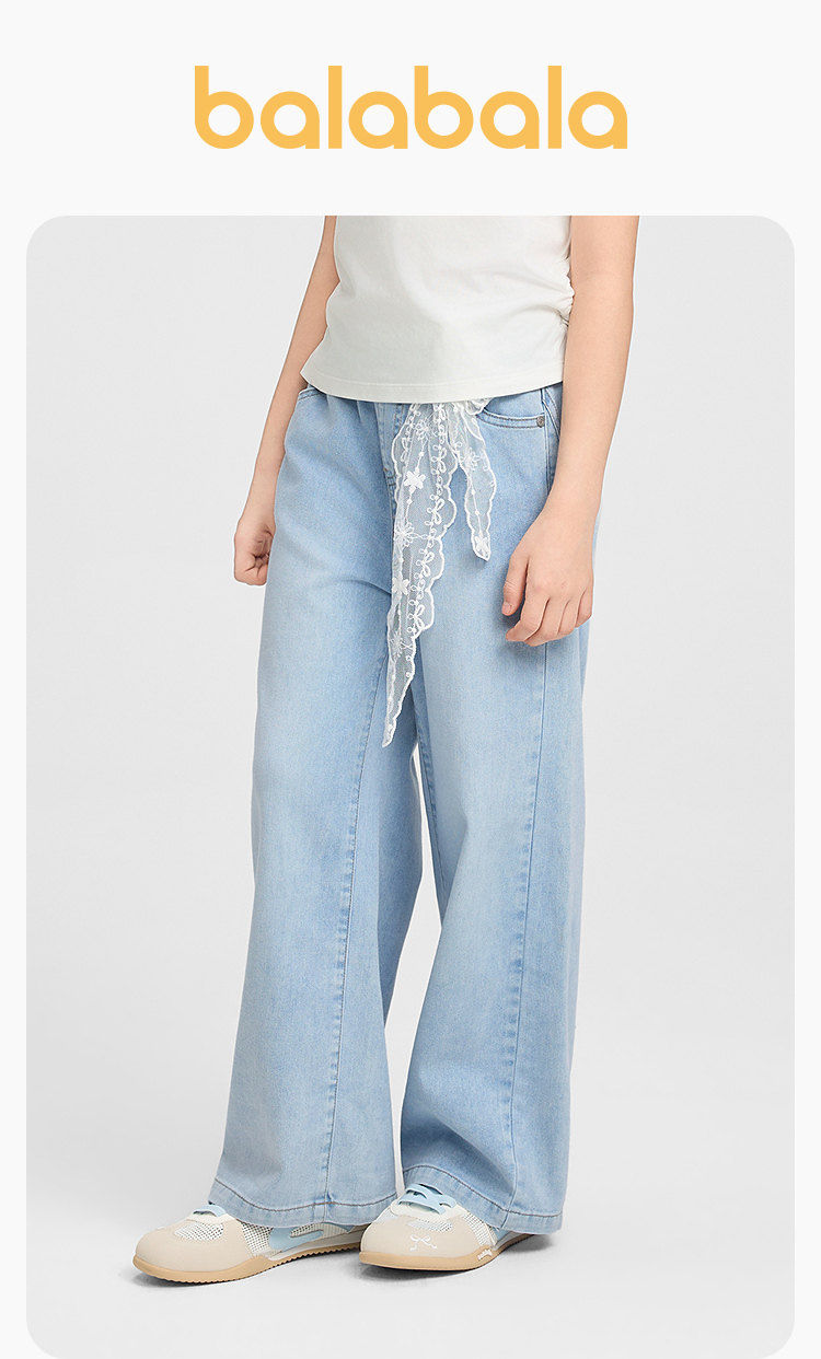【商场同款】巴拉巴拉女牛仔裤儿童裤子2026新款夏长裤凉感直筒裤