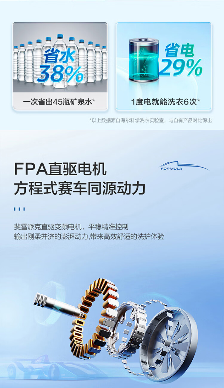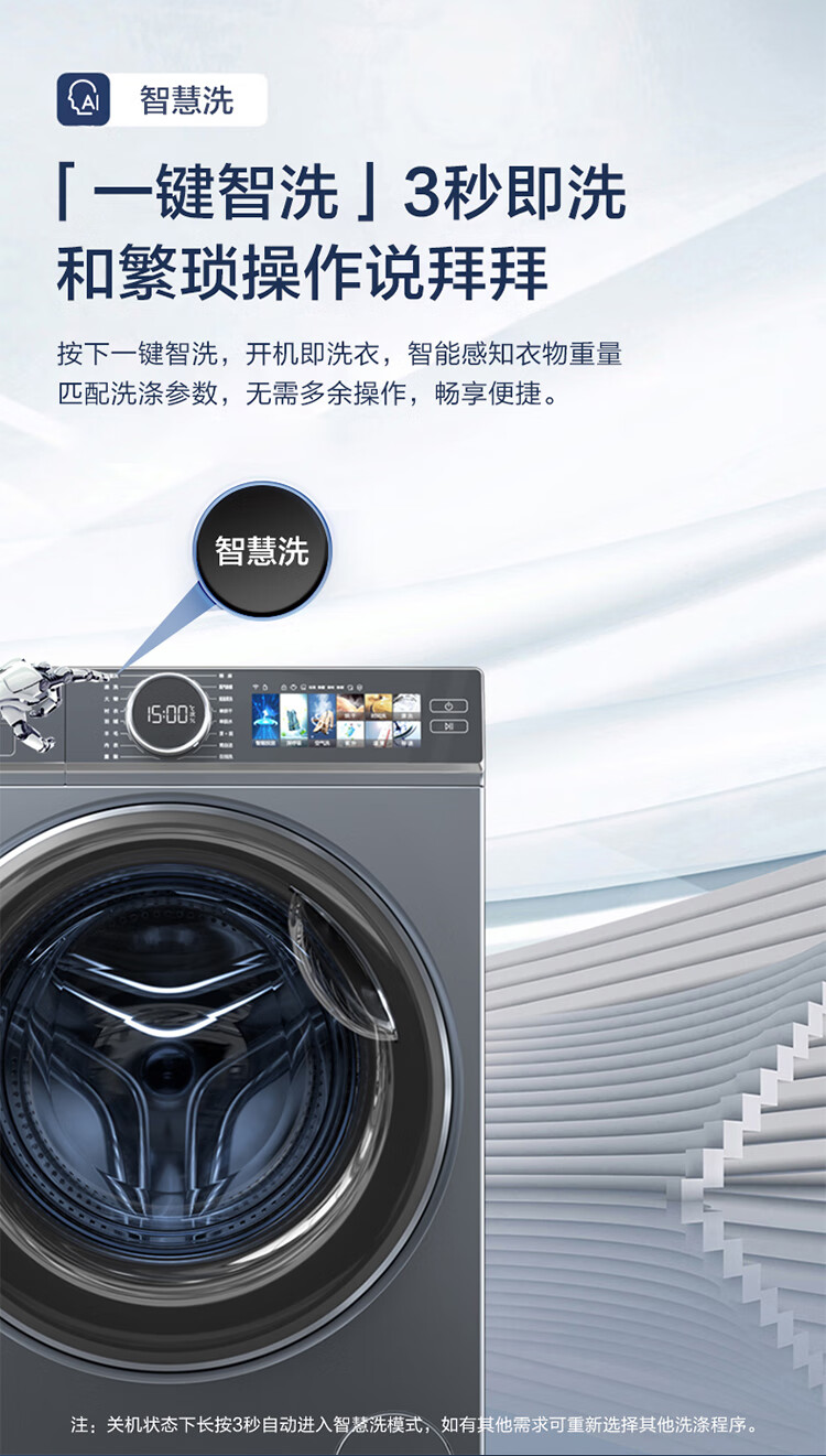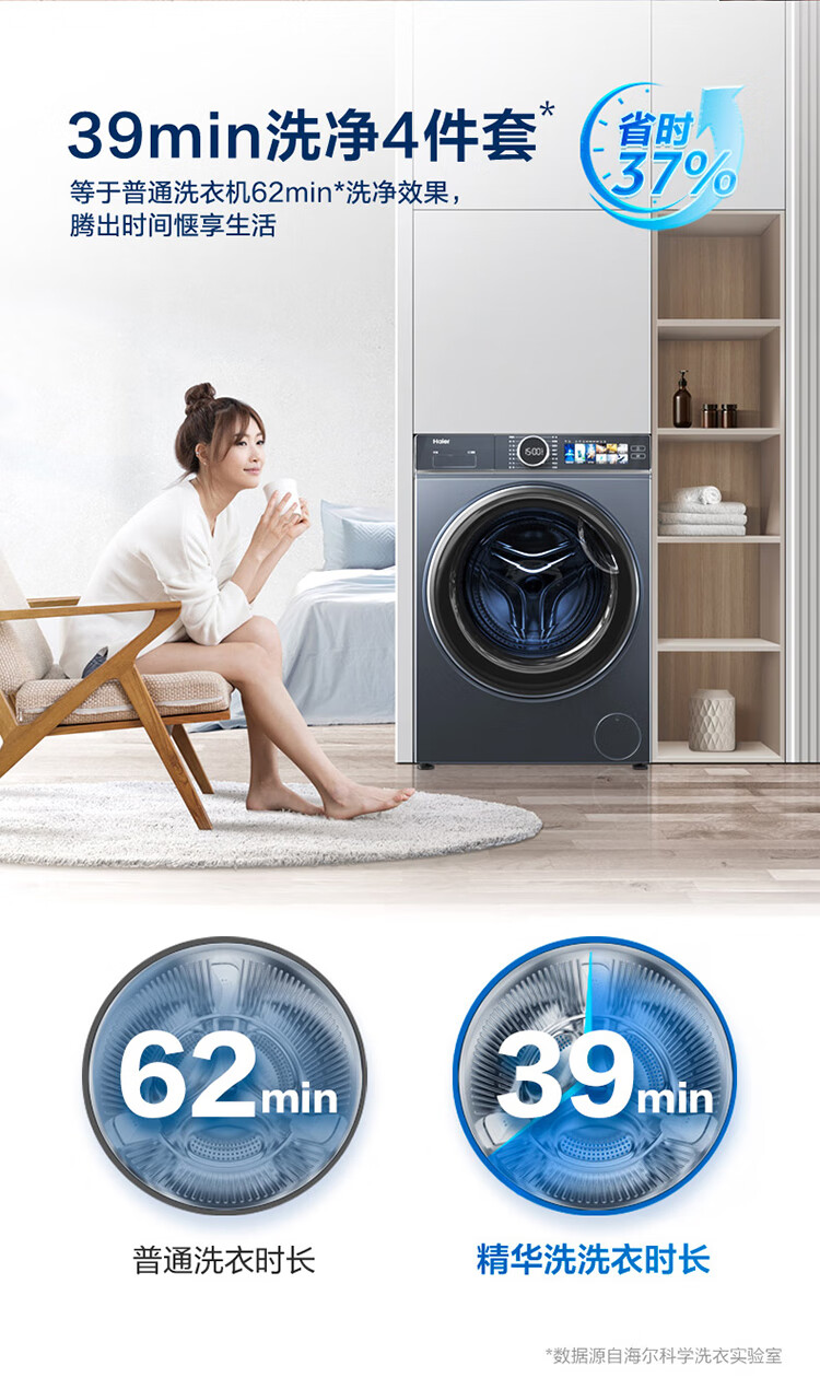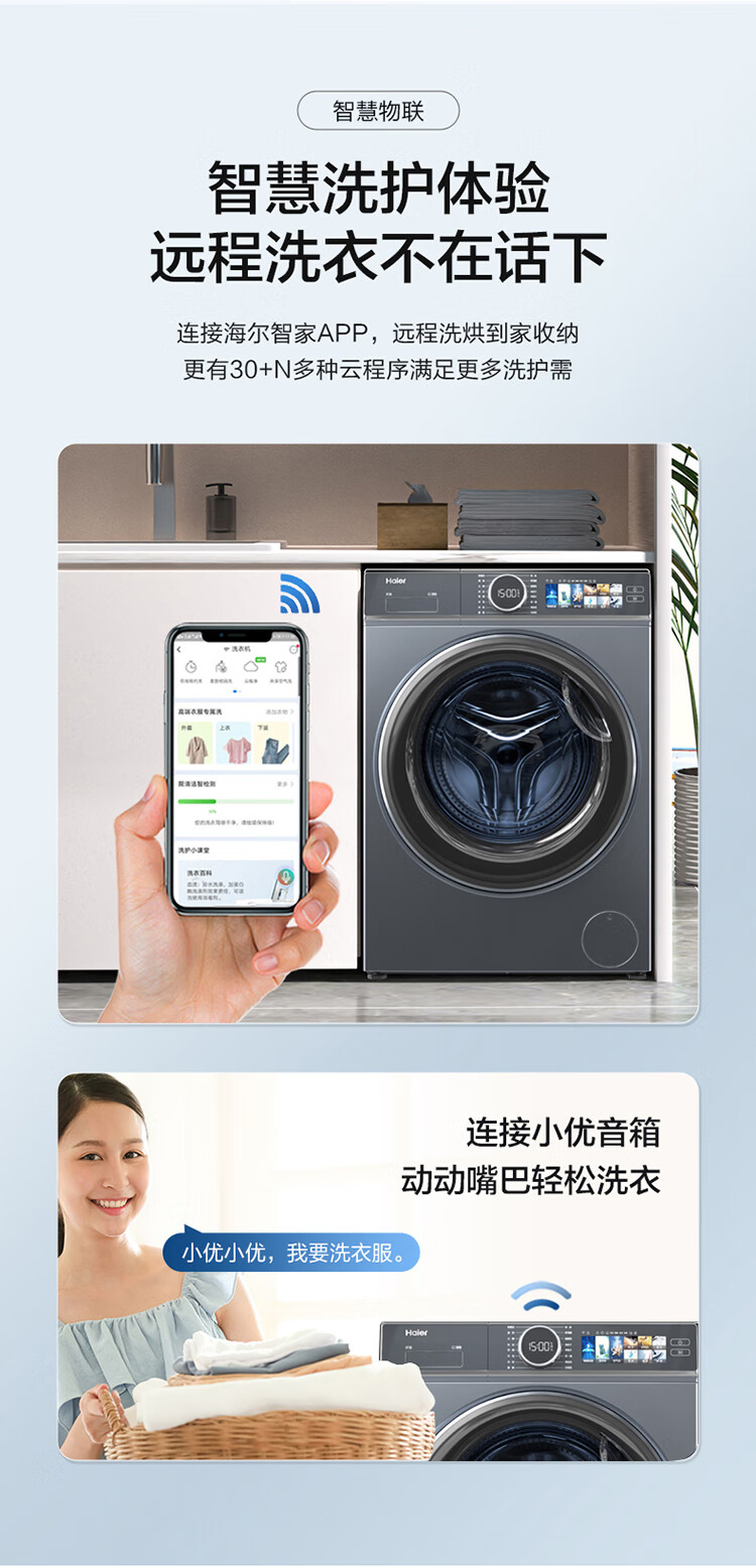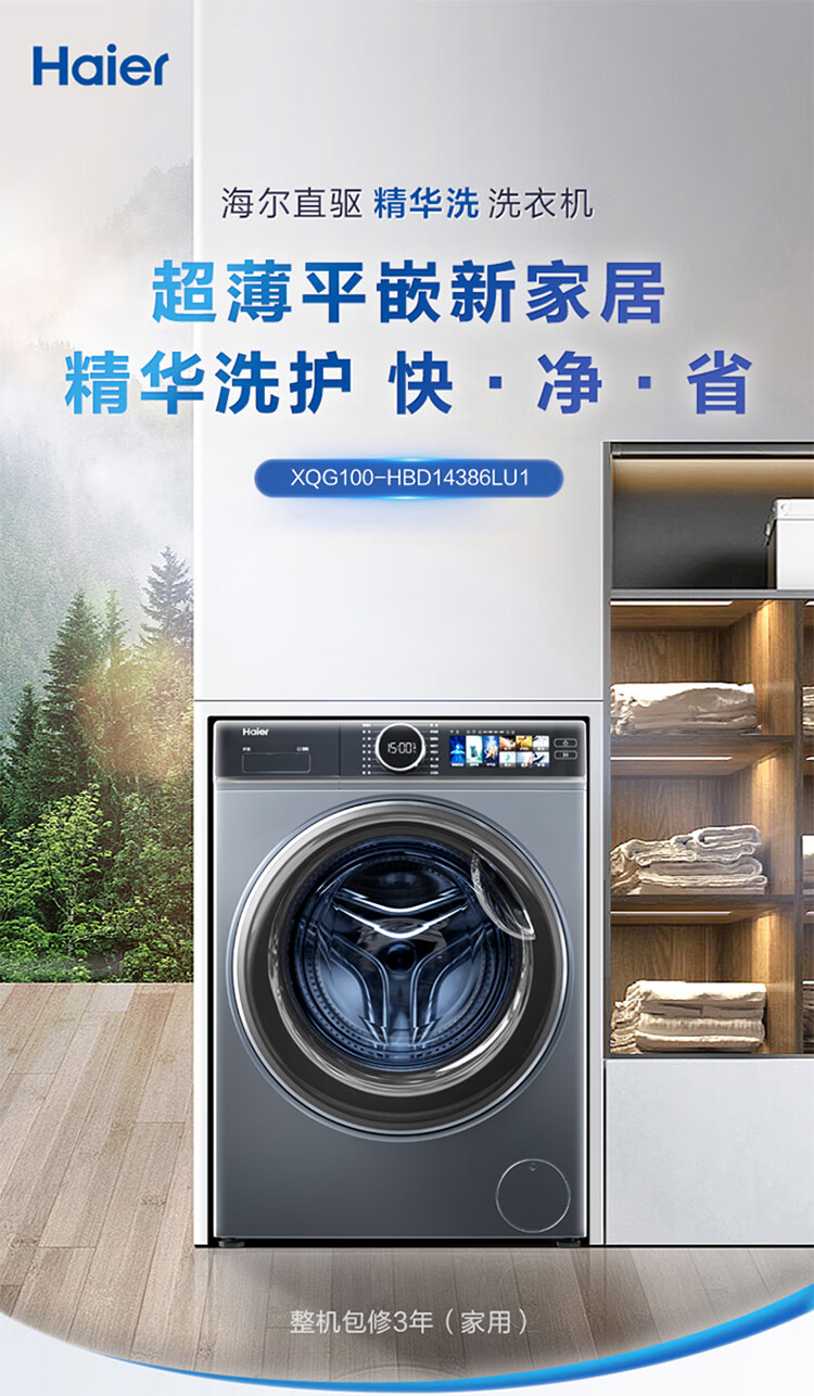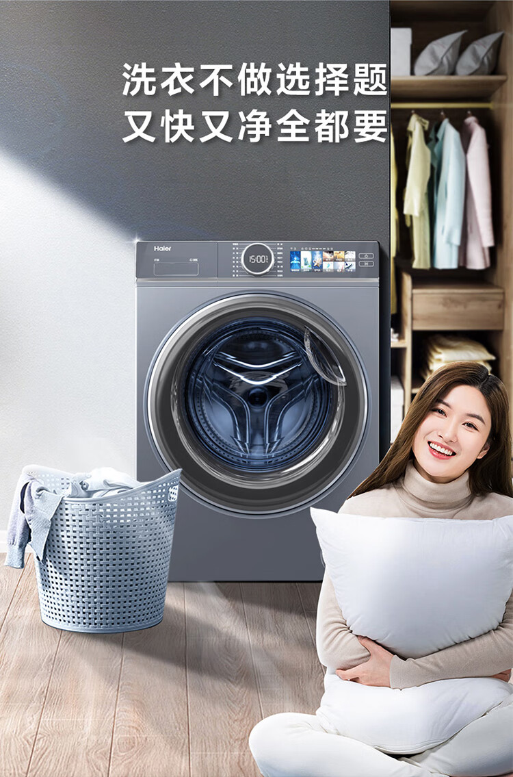 海尔(Haier)10KG滚筒洗衣机洗烘一体超薄精华洗直驱变频智能投放双喷淋炫彩屏386
