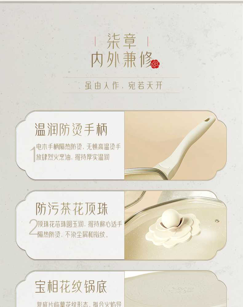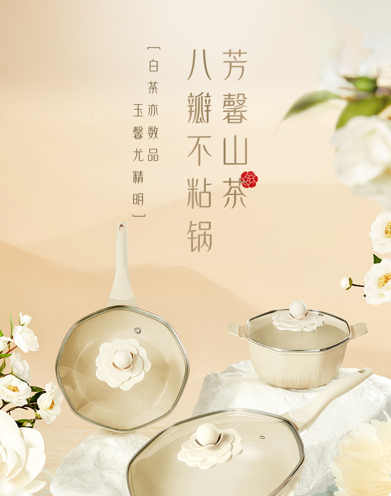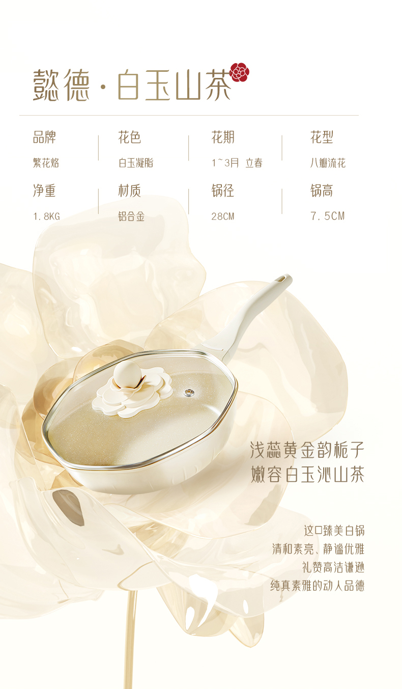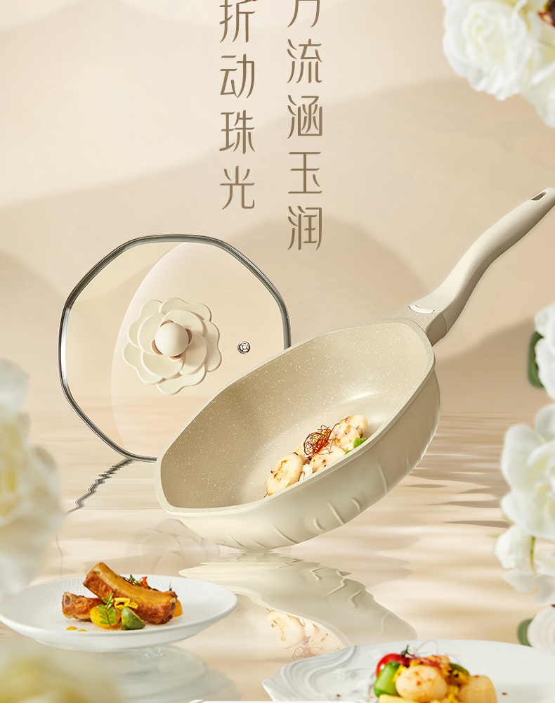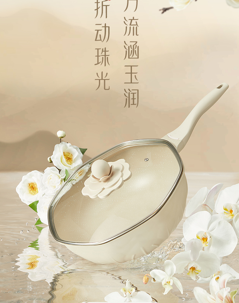 【繁花烙】白玉山茶炒锅32cm煎锅28cm