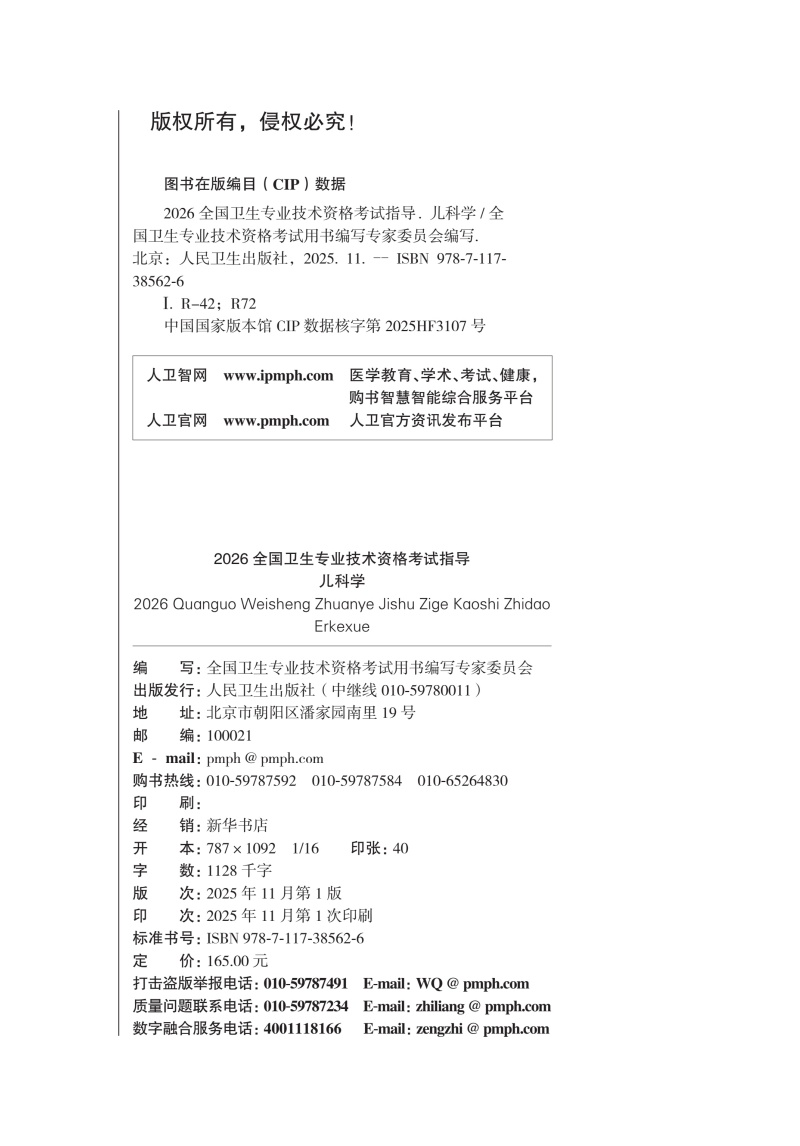 书名:2026全国卫生专业技术资格考试指导——儿科学