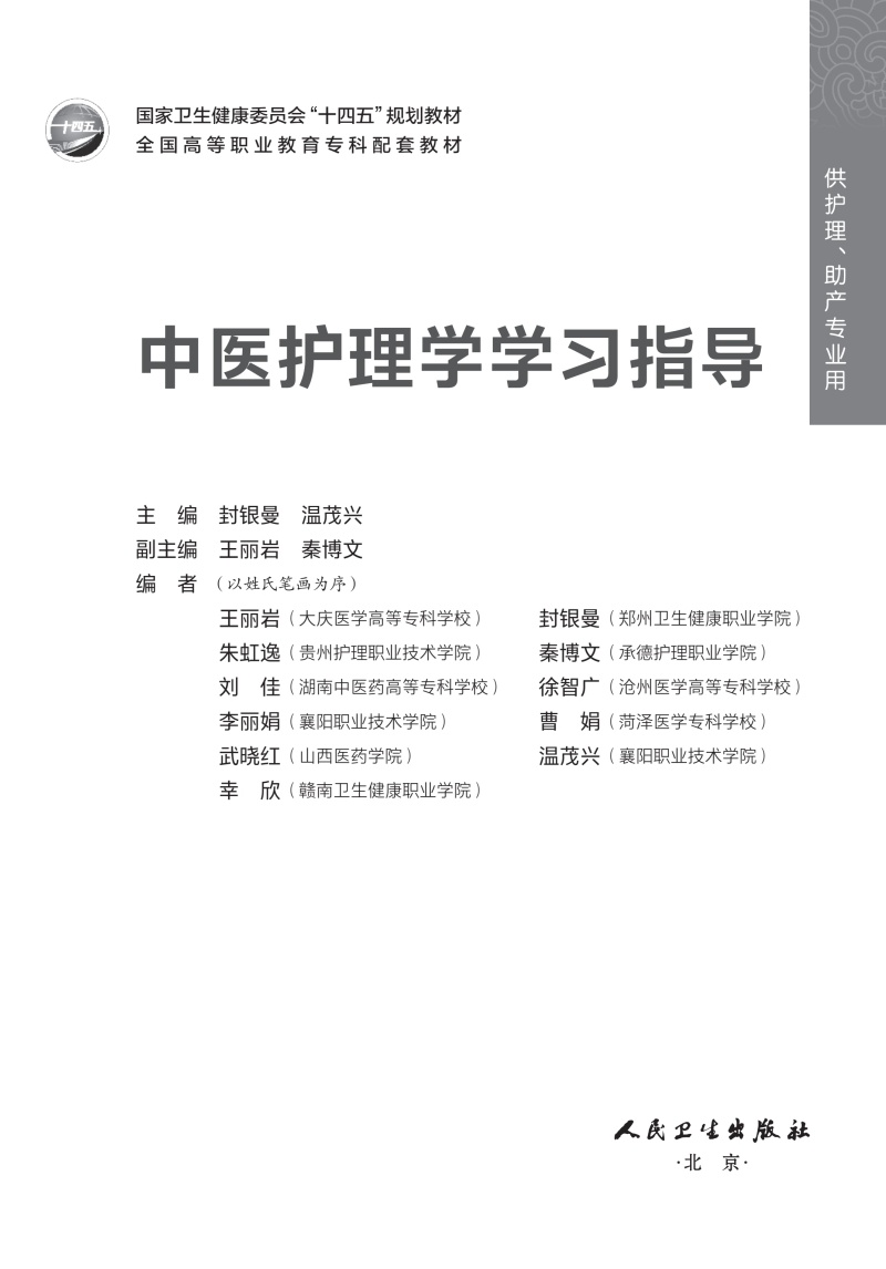 中医护理学学习指导 十四五规划教材全国高等职业教育专科配套教材 封银曼 温茂兴 供护理 助产专业用9787117387729人民卫生出版社