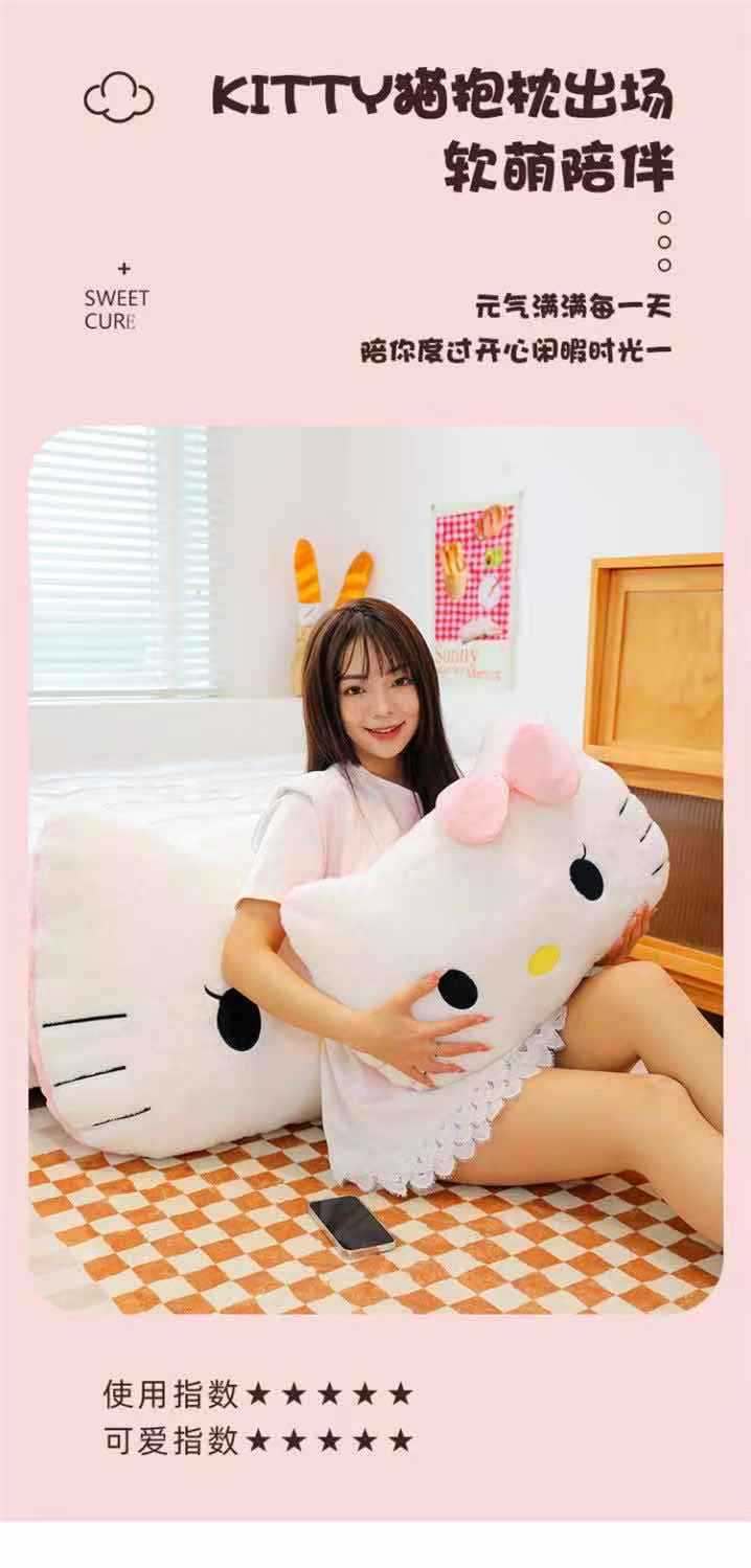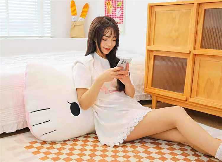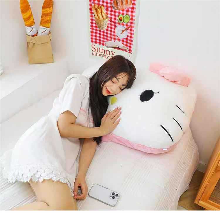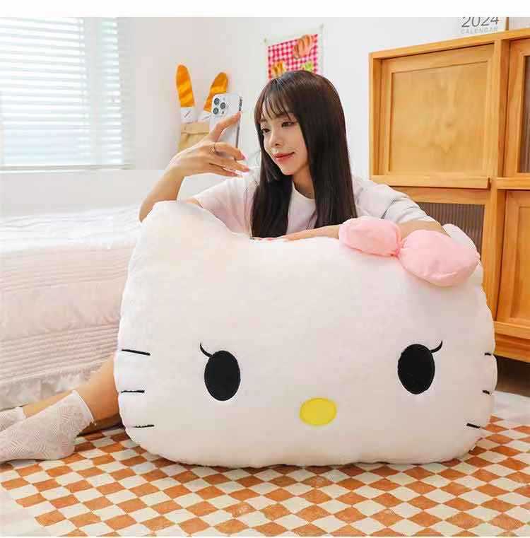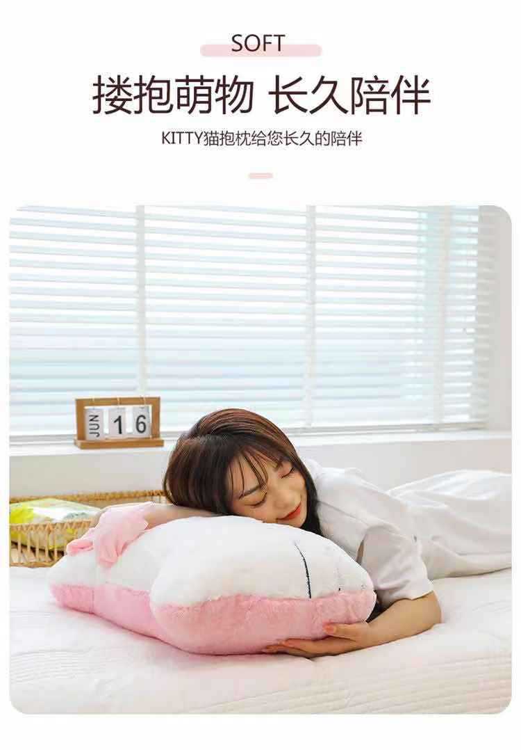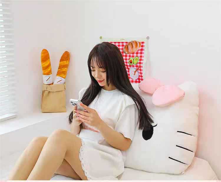【萌趣KITTY造型、毛绒材质超柔软】毛绒靠枕床头靠垫宿舍大靠背垫汽车抱枕可爱女生沙发座椅护腰.TA