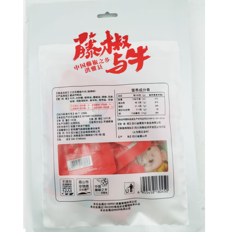 江志忠藤椒牛肉麻辣味105g【新老包装随机发货】