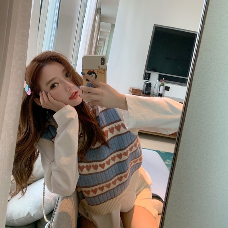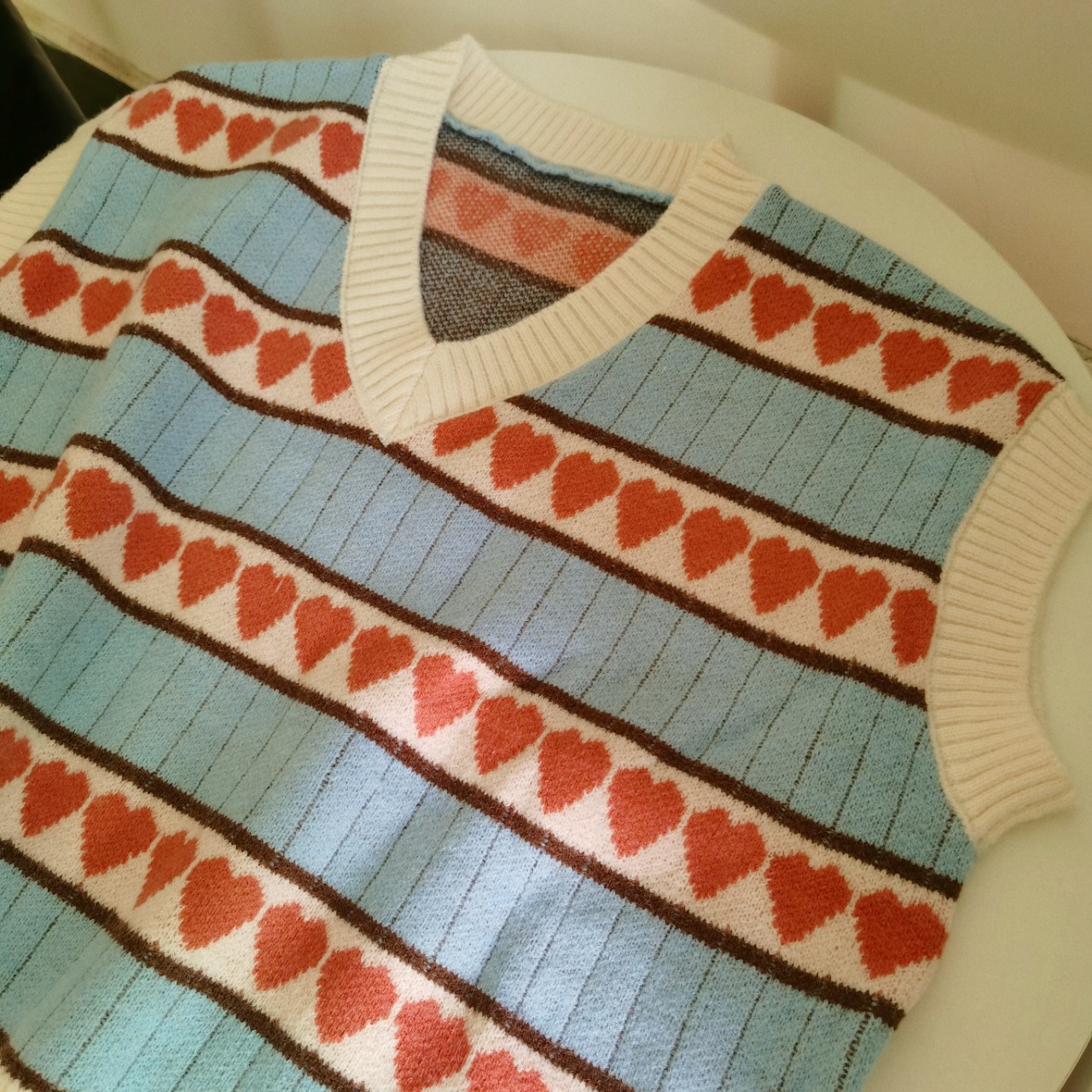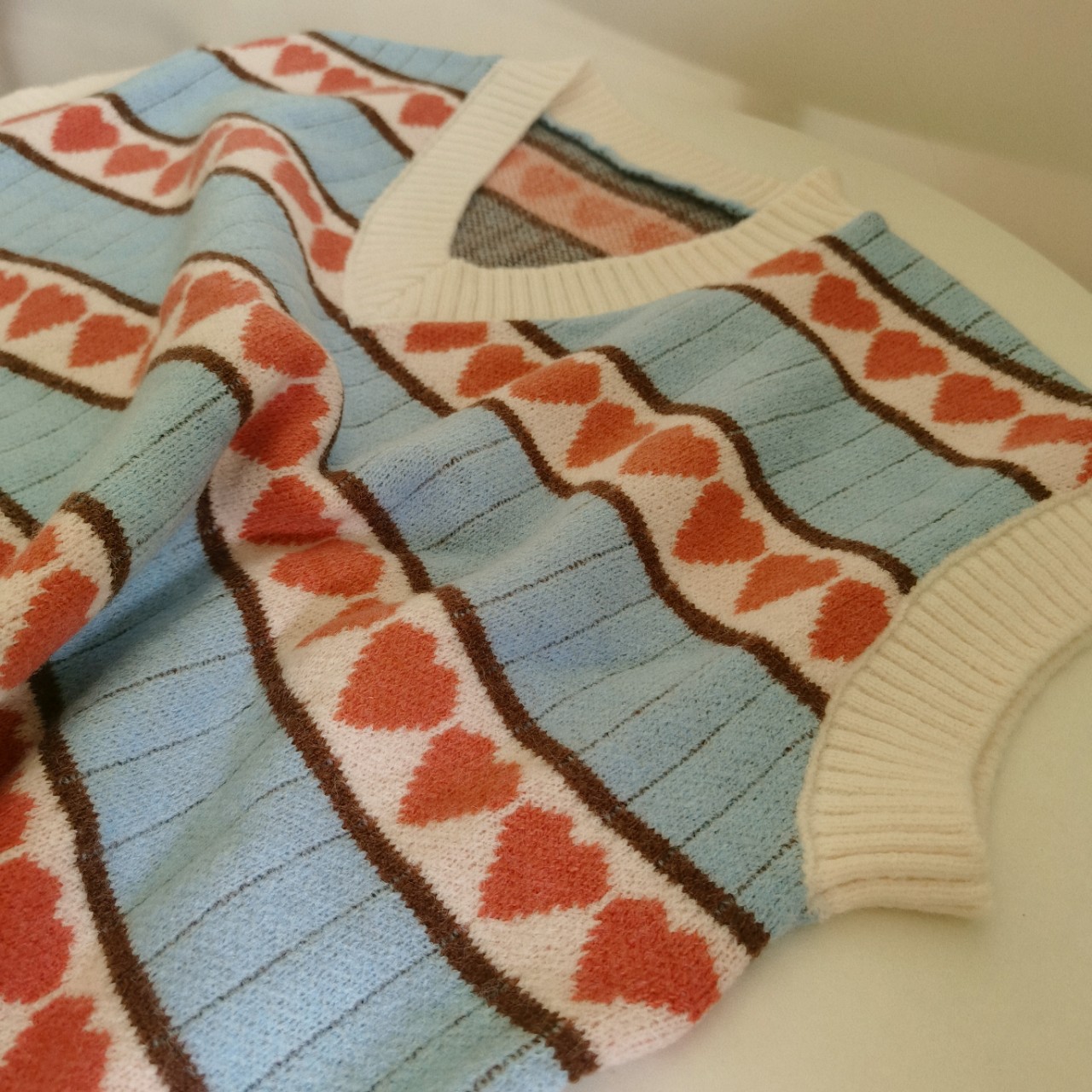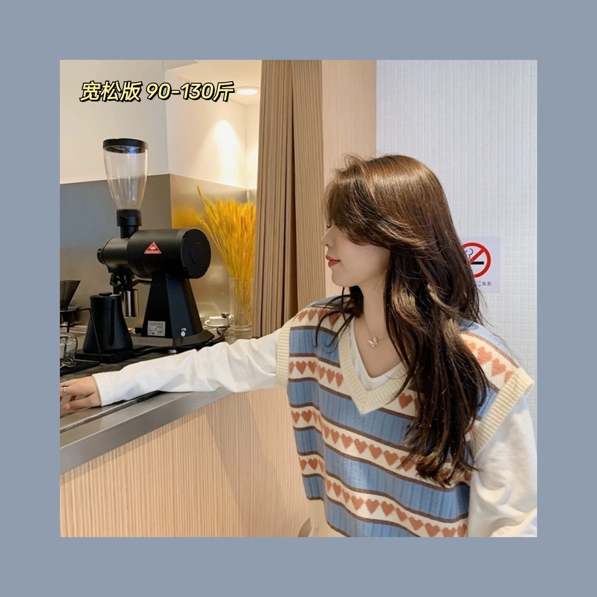 爱心提花宽松针织背心马甲 无袖坎肩 2020秋冬厚针织毛衣