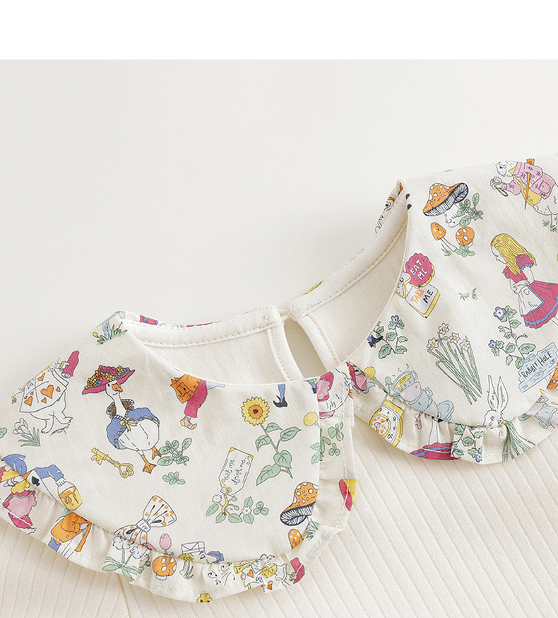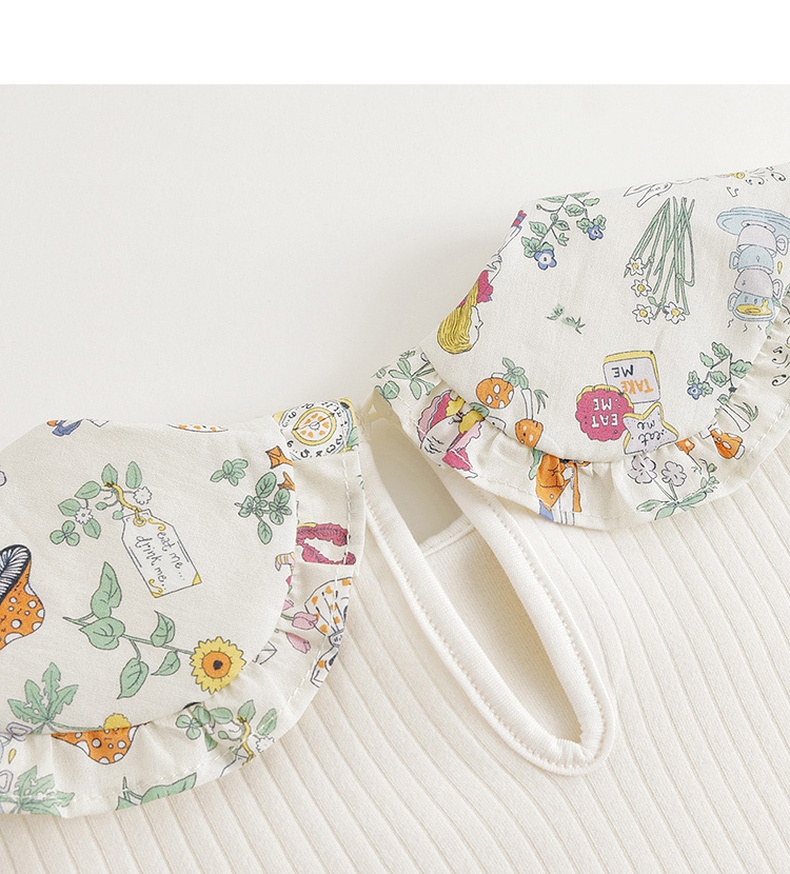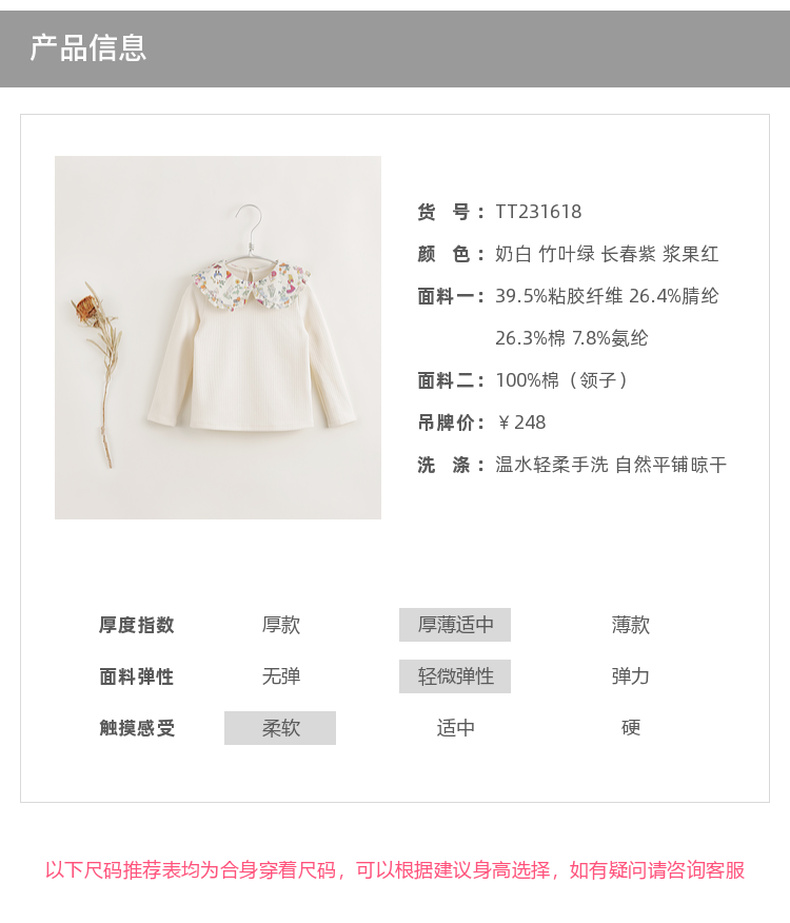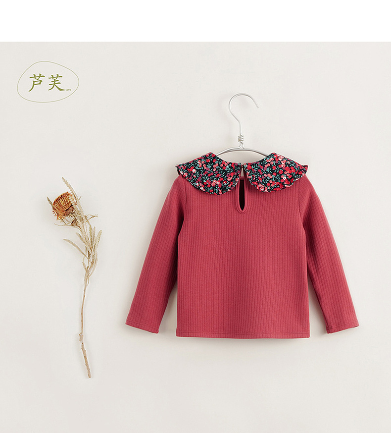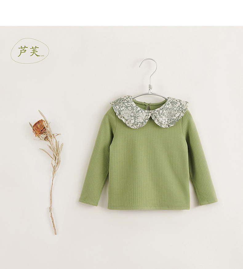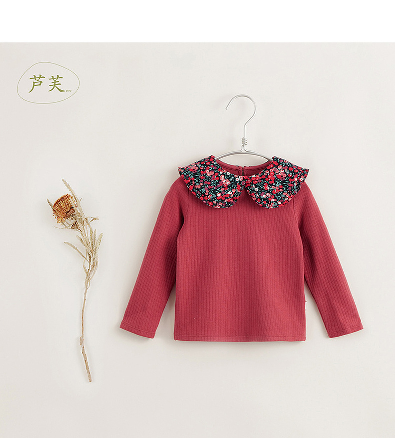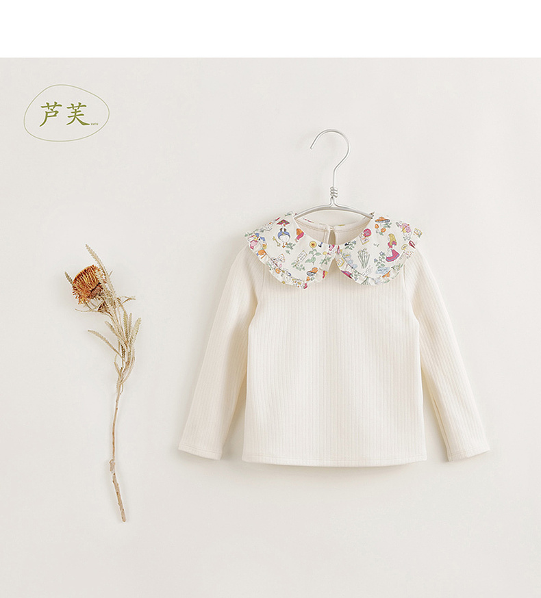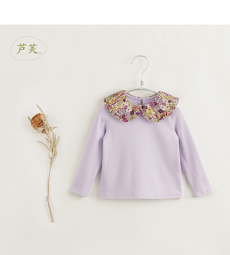 【马克珍妮 芦芙】黑科技发热 女童碎花翻领条纹T恤打底衫 231618