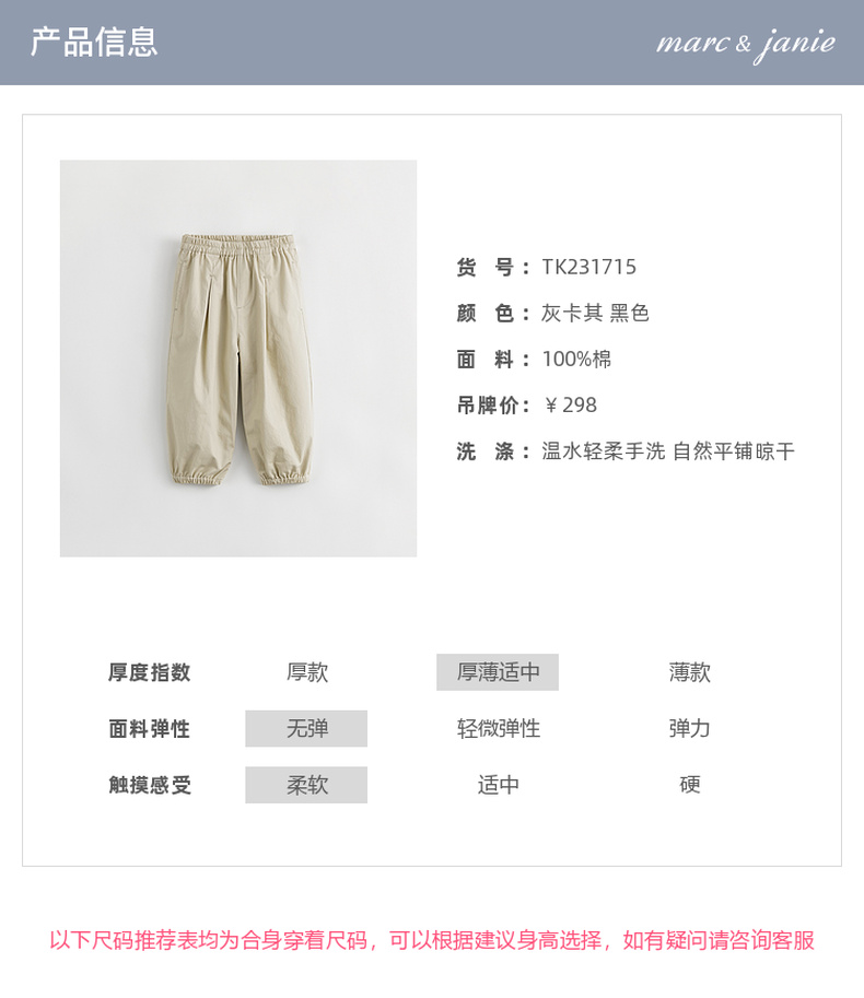 马克珍妮秋装新款 男女童纯棉束脚休闲裤 儿童运动裤231715