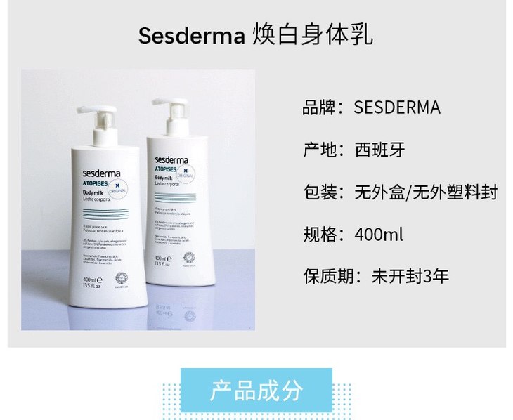 最new版sesderma美白身体乳400ml 美白超牛货范冰冰同款 身体小灯泡