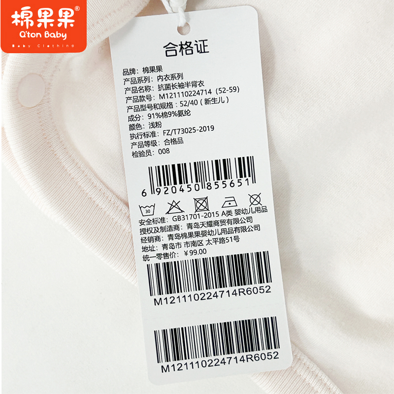 棉果果专柜同款春季新品内衣家居女宝5A抗菌长袖半背衣M121110224714