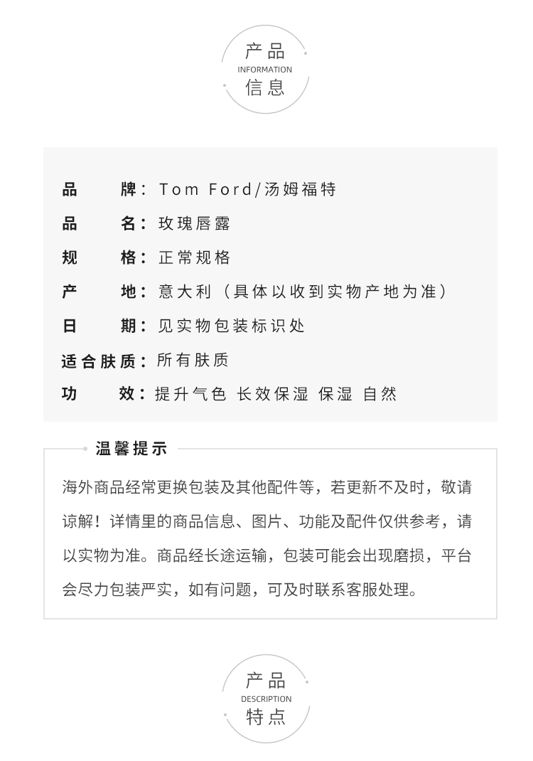 TF玻璃唇●Tom Ford汤姆福特新品限定玫瑰唇露 唇油 水润嘟嘟唇【CDF】