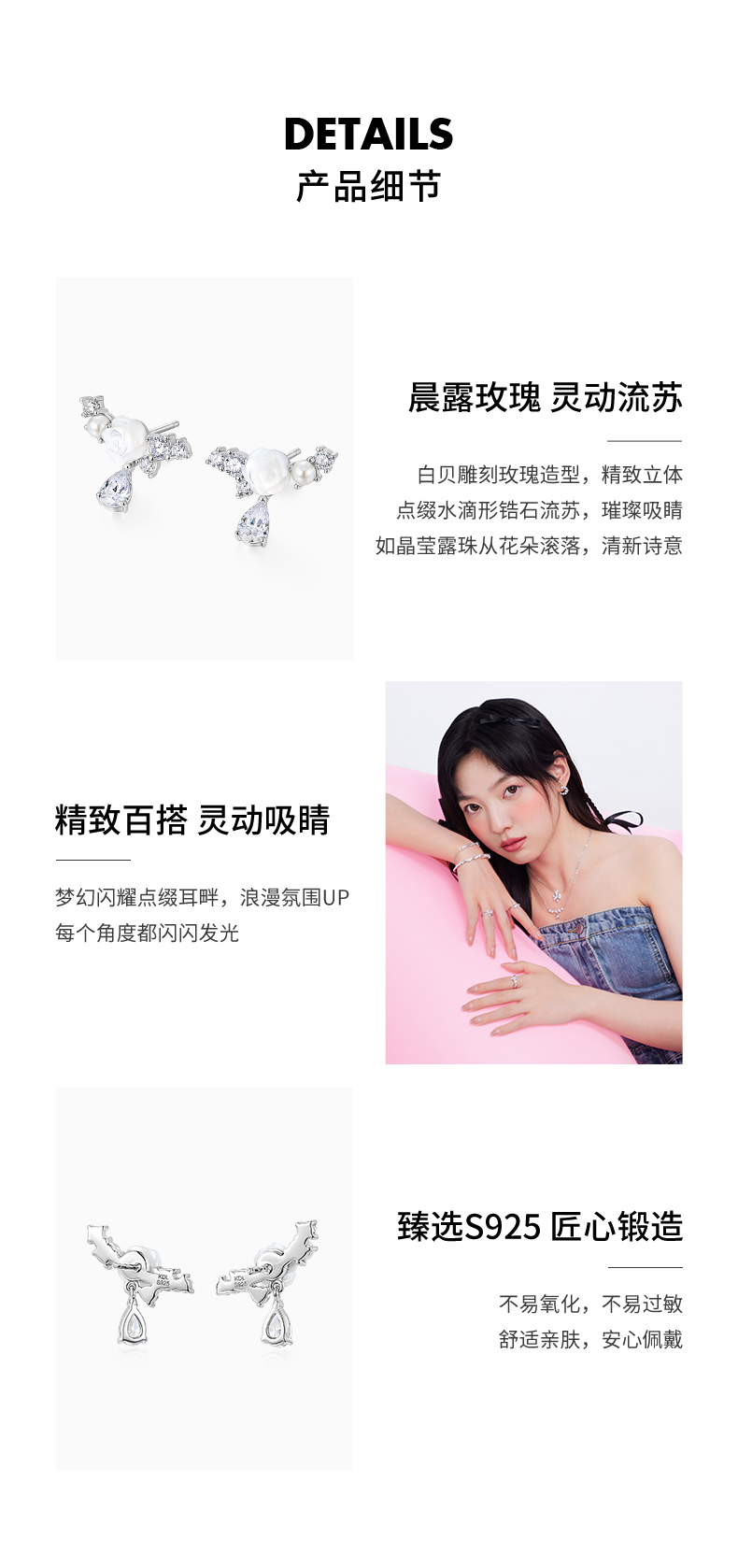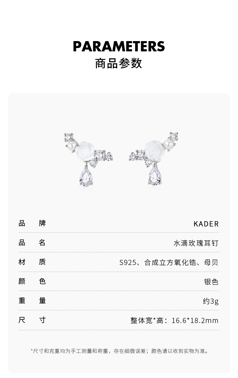 卡蒂罗/KADER 玫瑰物语系列 水滴玫瑰耳钉 925银轻奢时尚灵动流苏设计款耳饰 浪漫吸睛春日约会配饰 女友礼盒520