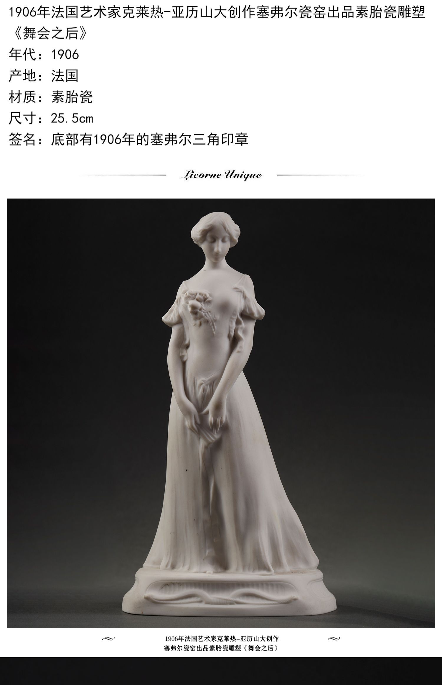 独角鹿西洋古董艺术家创作塞弗尔瓷窑出品素胎瓷雕塑《舞会之后》
