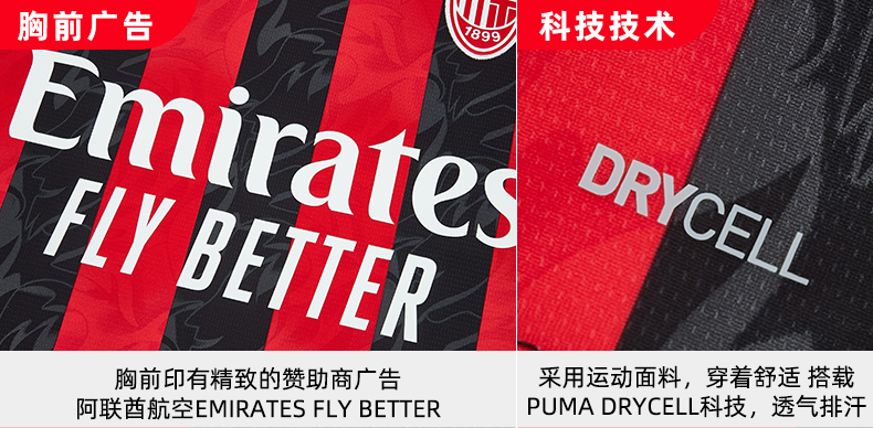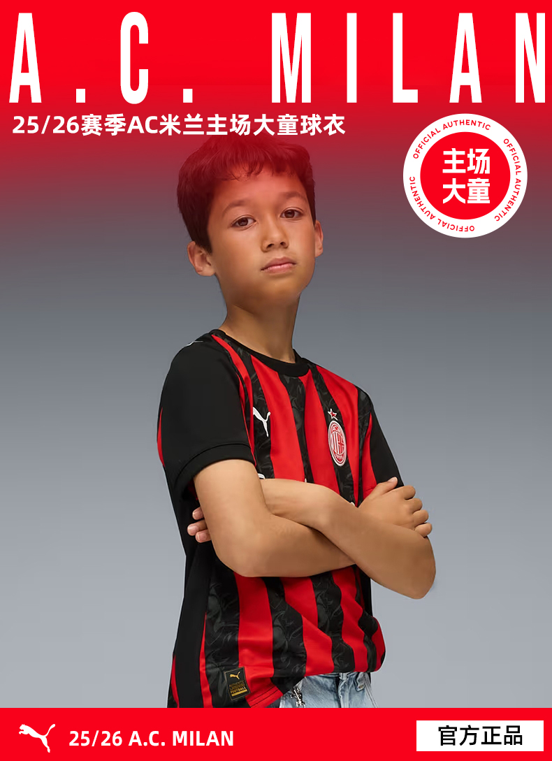 SFS彪马Puma 25/26AC米兰大童主场球迷版球衣短袖男子 779965-01