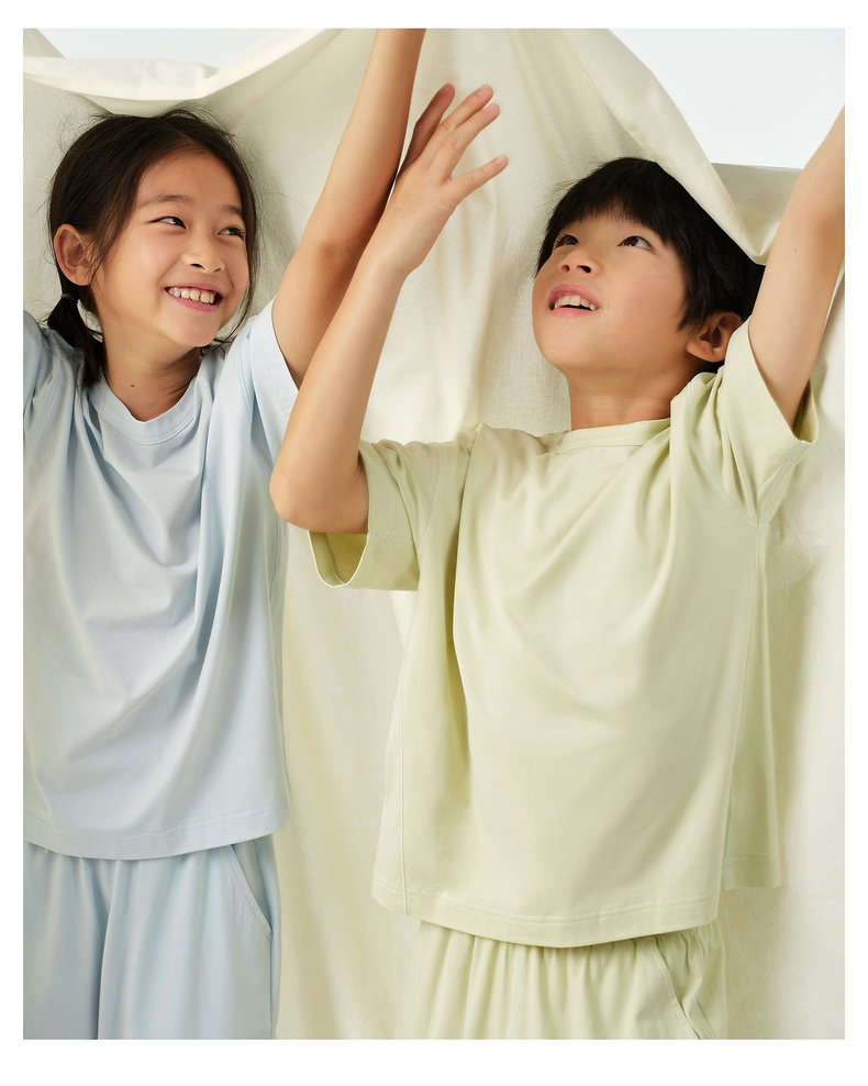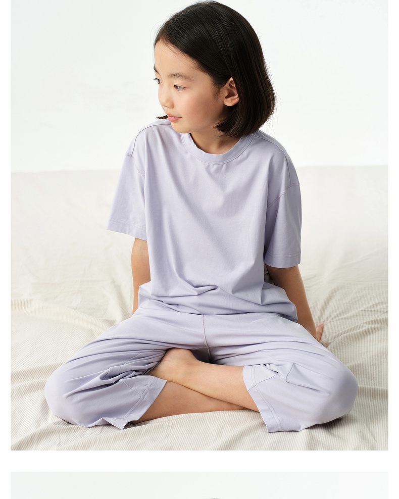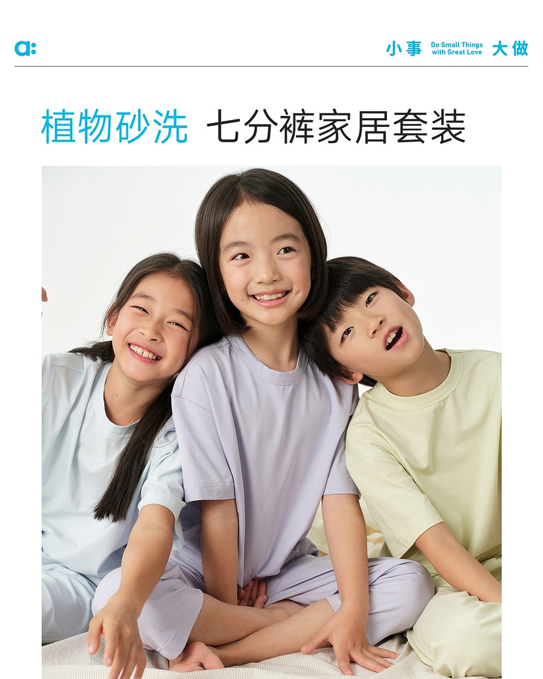 allblu幼岚植物砂洗七分裤家居套装,透气舒适,儿童家居套装