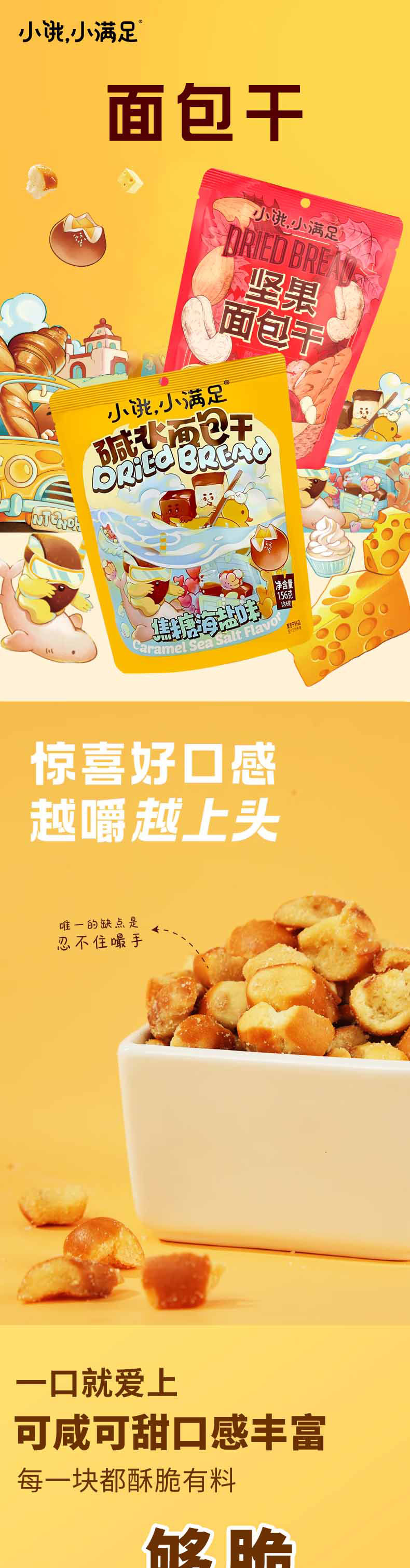 小饿小满足碱水面包干焦糖海盐味|坚果面包干92g~156g