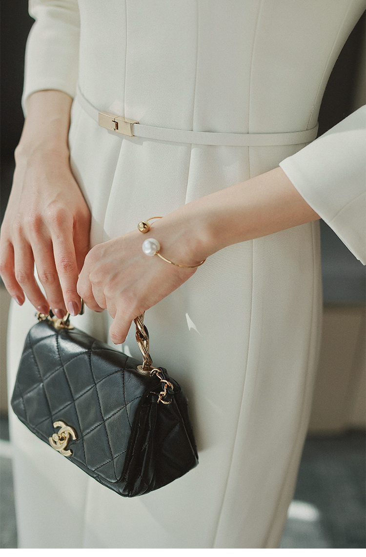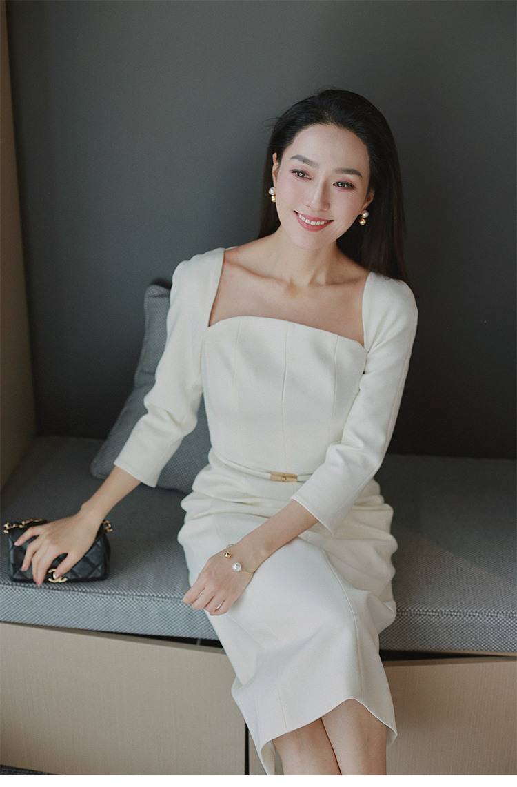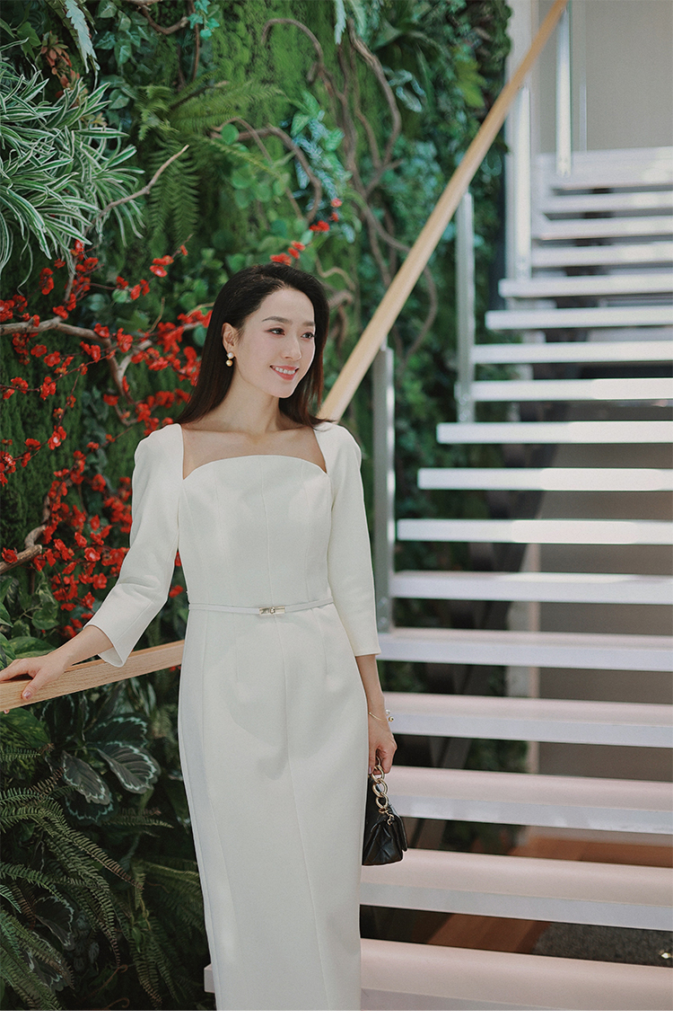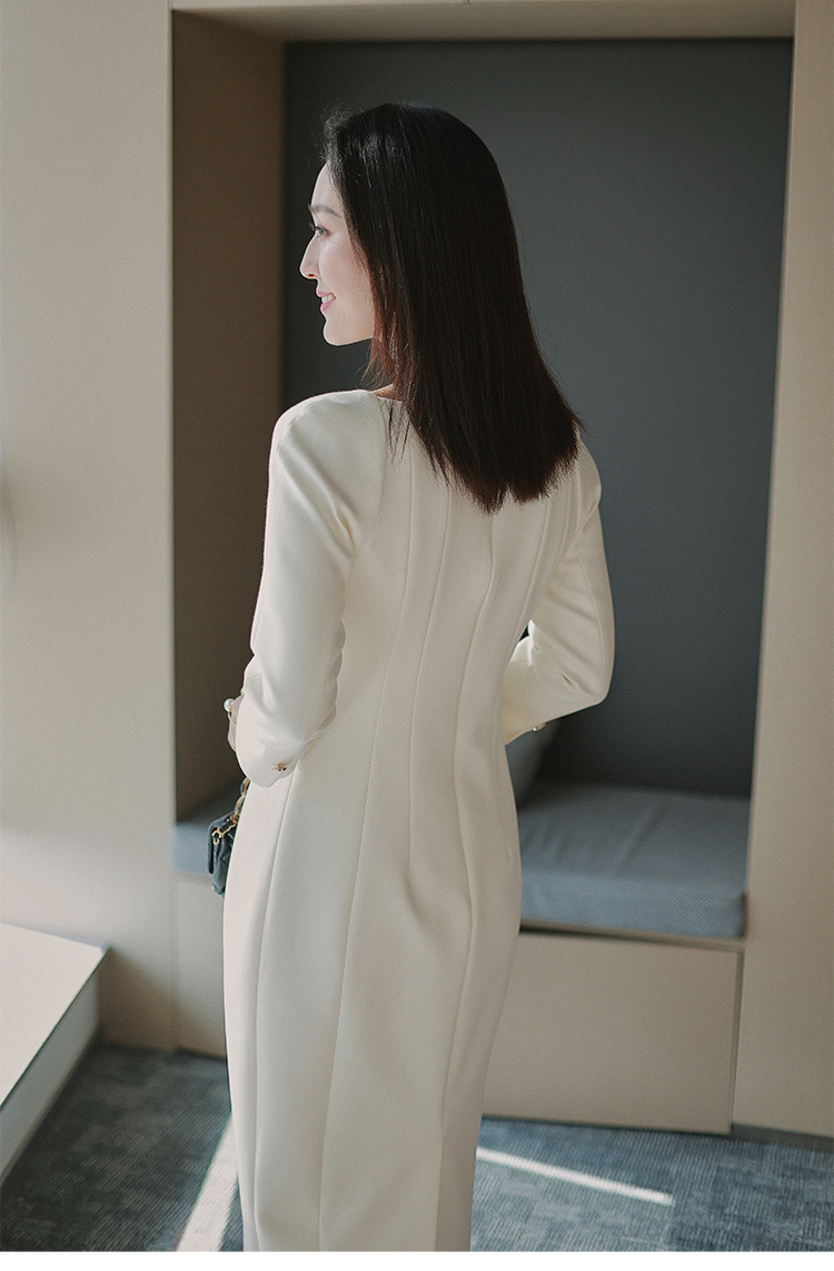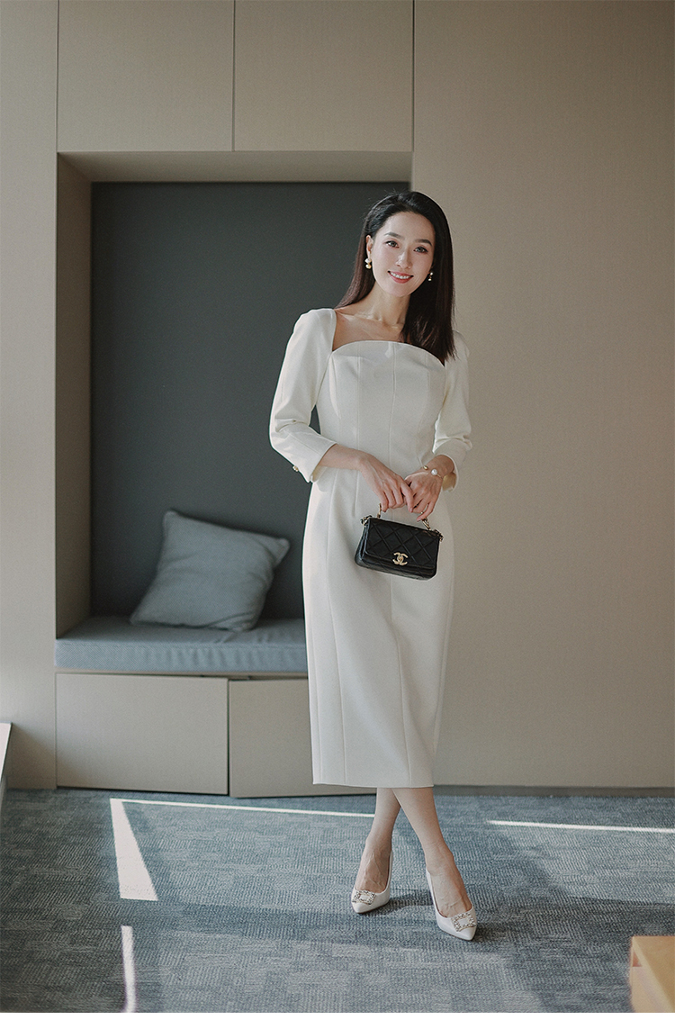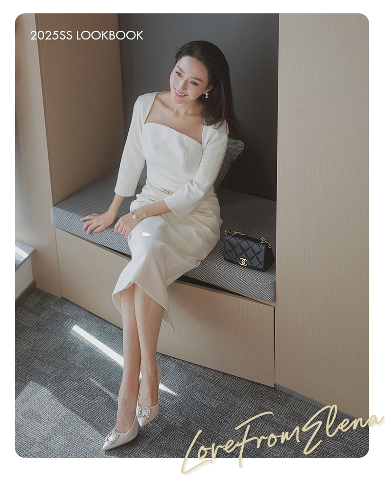 “赫本衣橱”质感通勤 花瓣方领设计 七分袖连衣裙