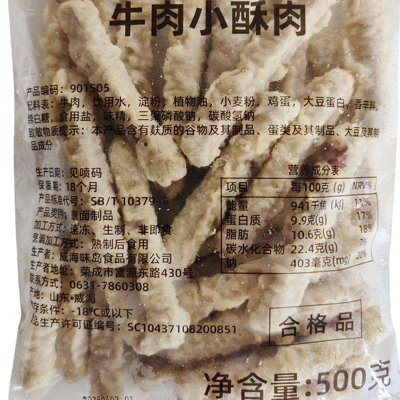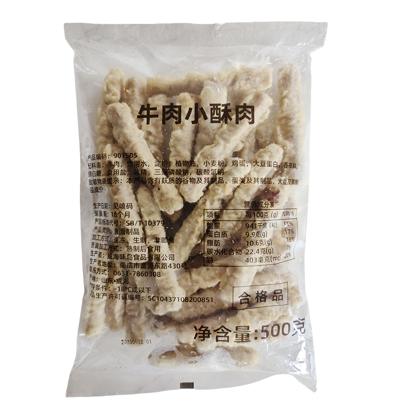 牛肉小酥肉500g南美草饲酥脆牛肉条商用冷冻半成品油炸小吃(顺丰发货)