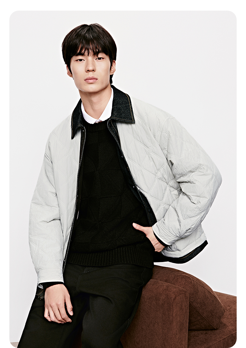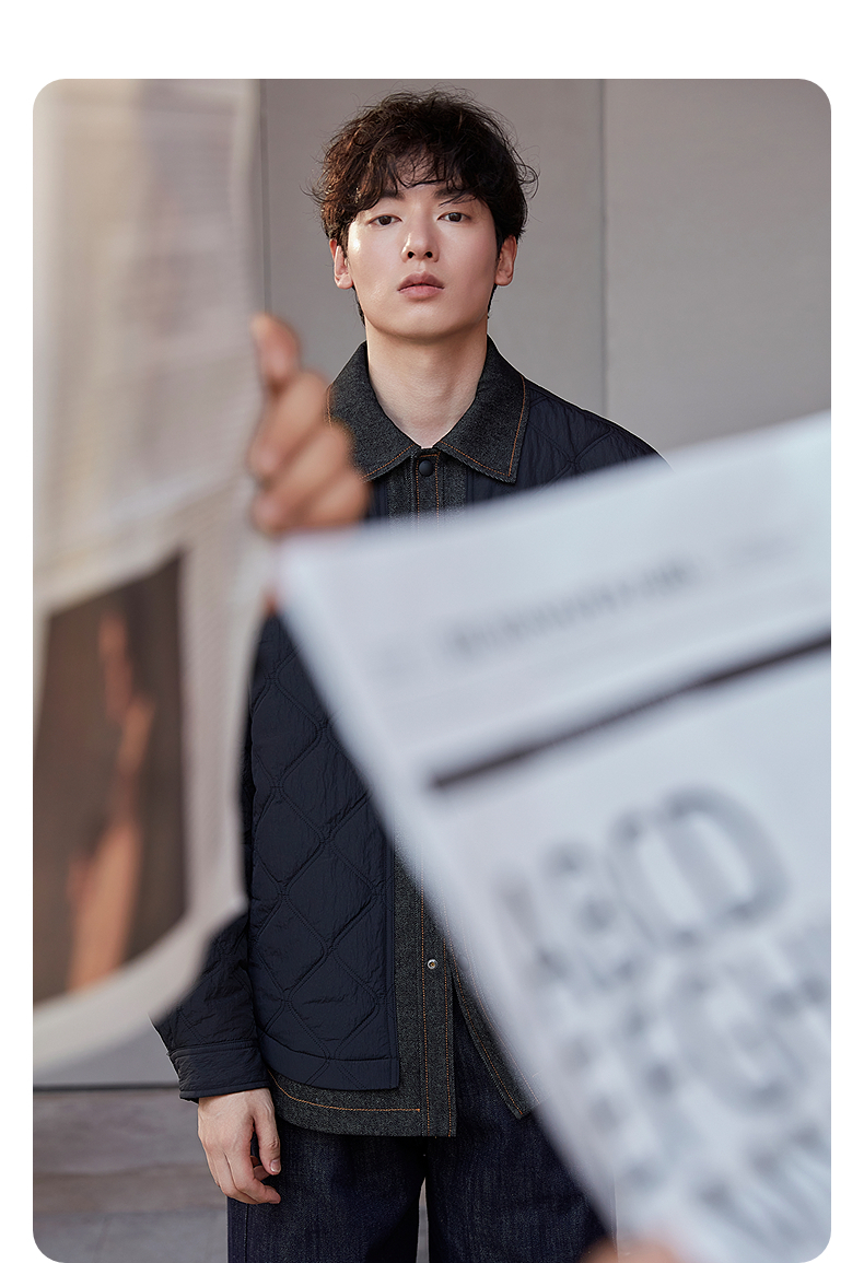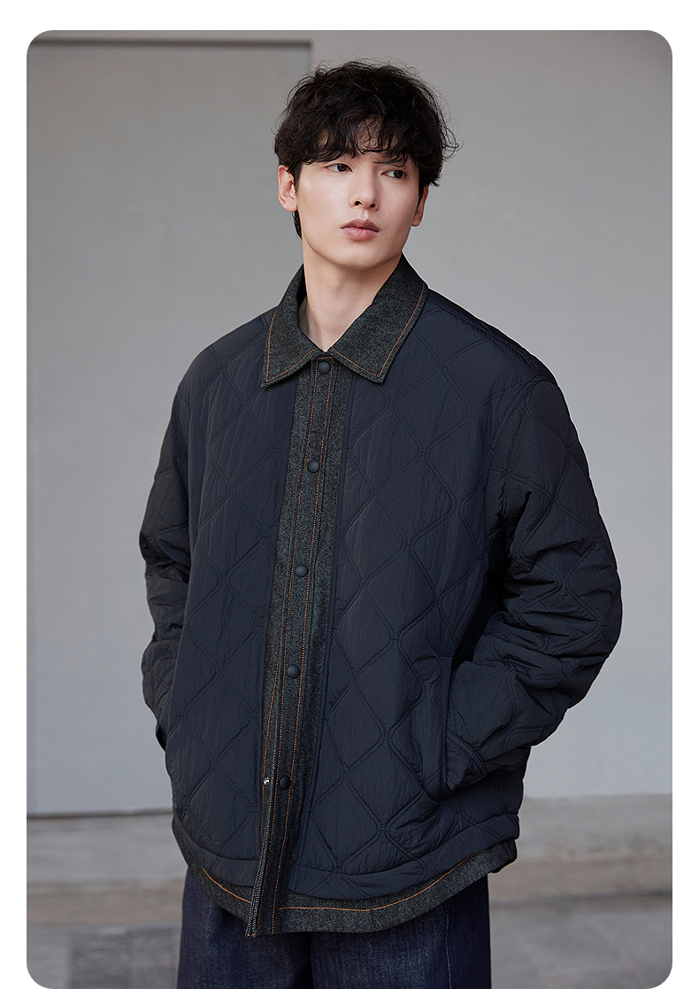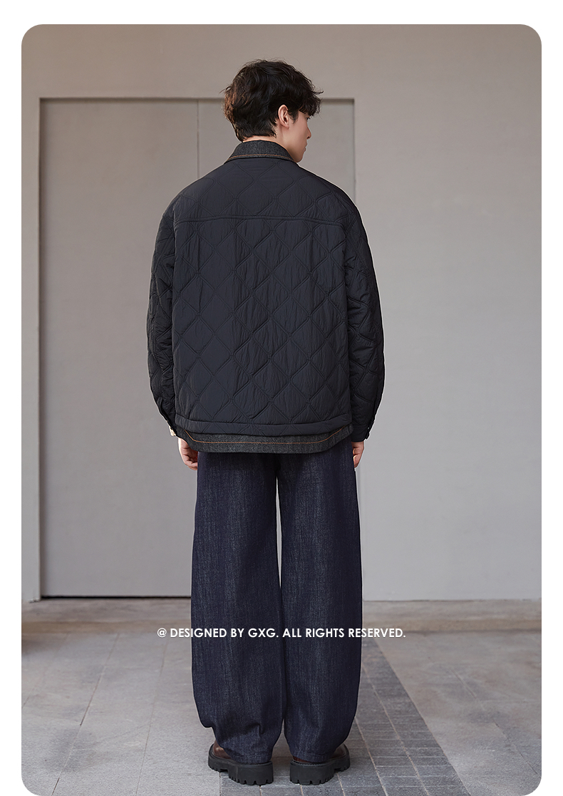 GXG男装 绗缝牛仔拼接假两件设计棉服夹克休闲外套 25年冬季热卖