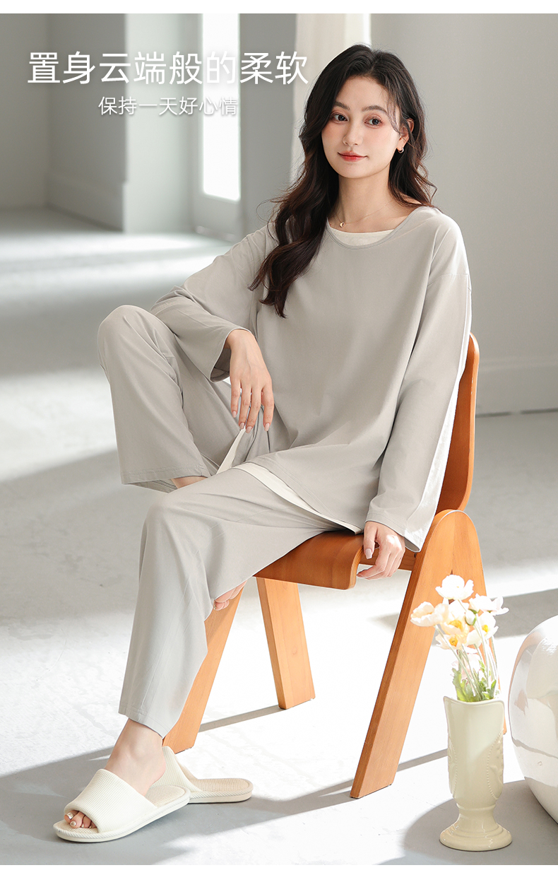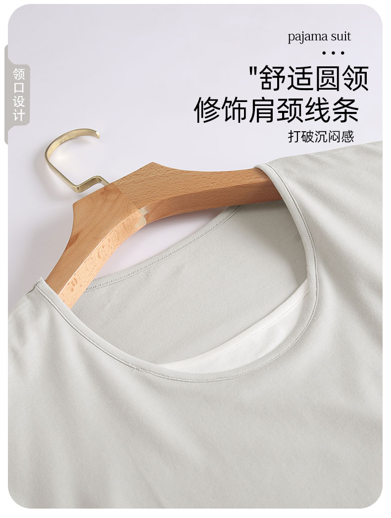 洁丽雅正品假两件女士家居服套装薄款吸湿透气简约大码裸感睡衣女