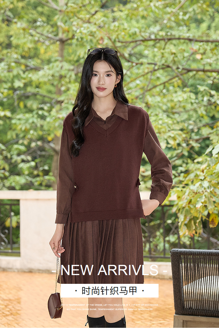 奢姿大码女装2025冬季减龄螺纹V领针织上衣胖妹妹时尚开叉马甲9854694342B