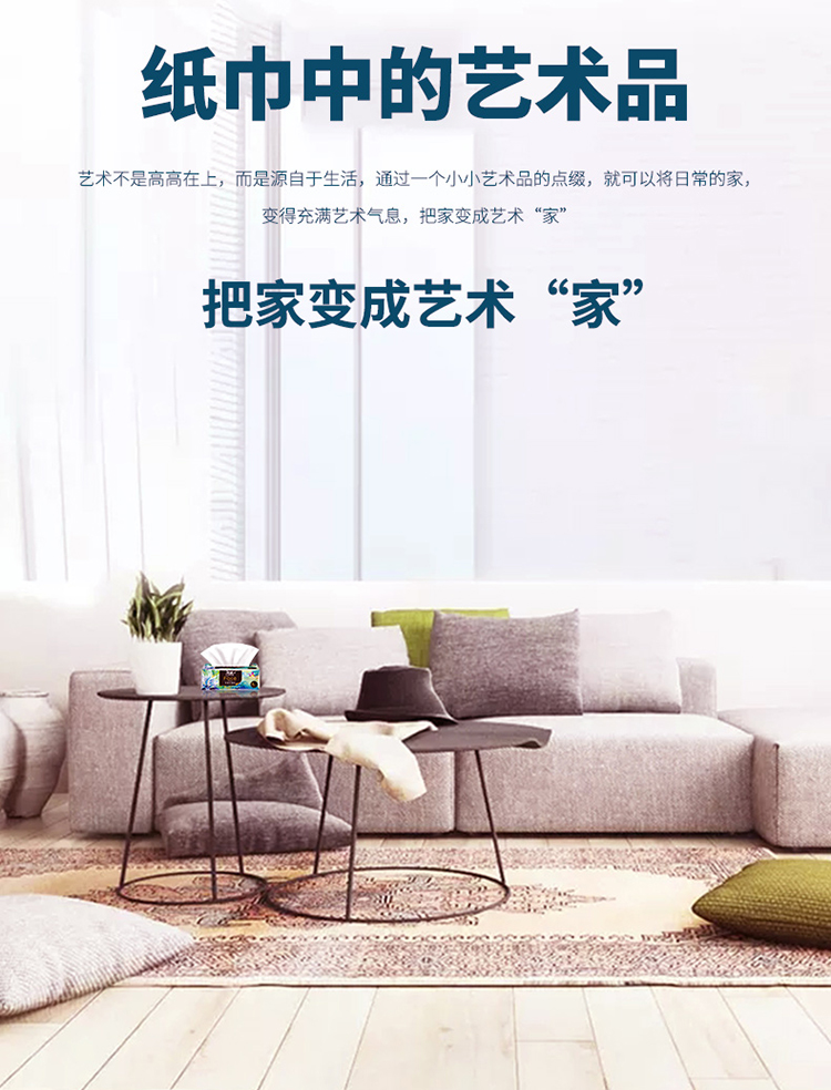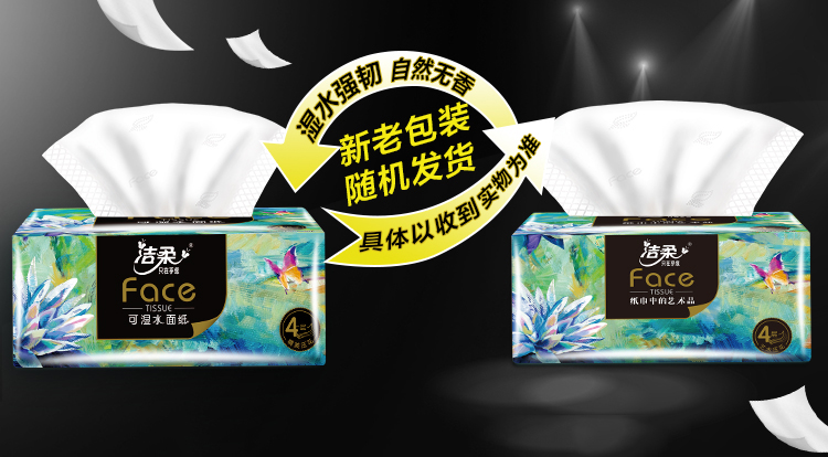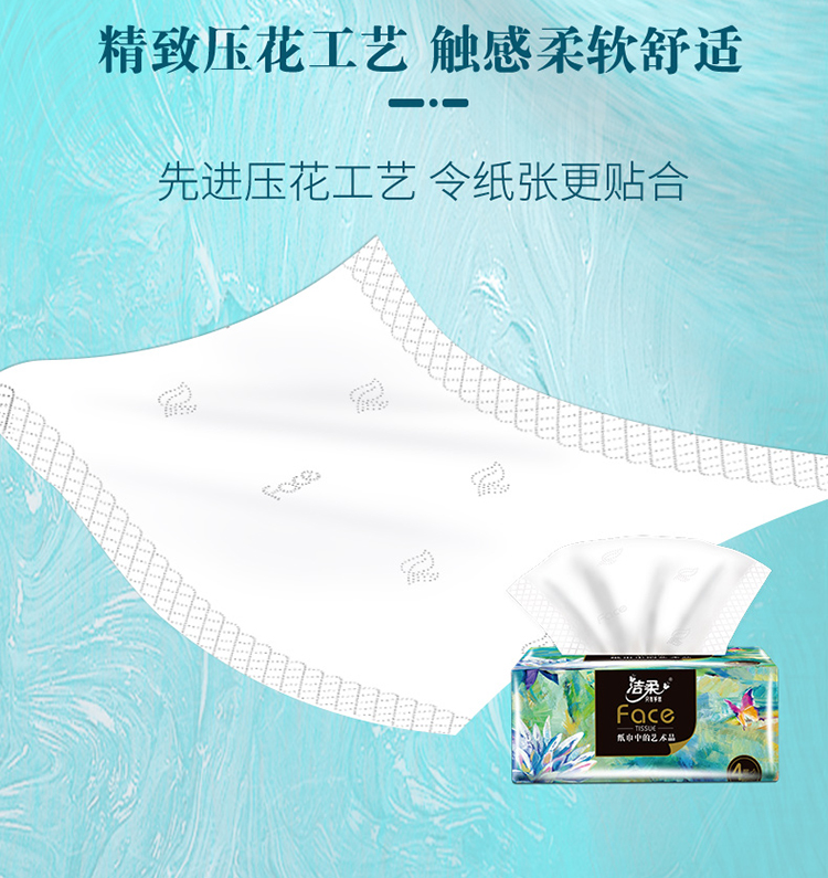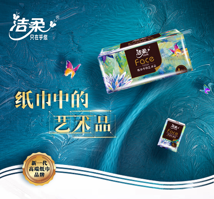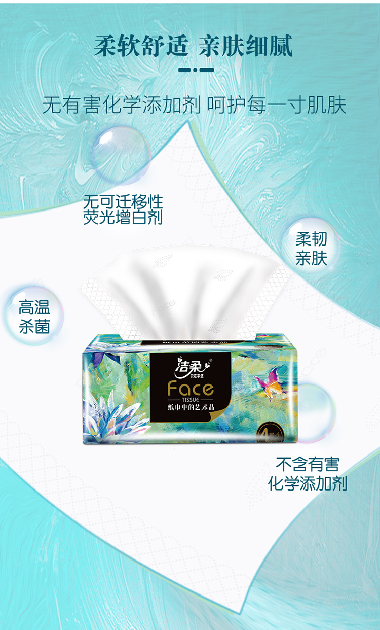 洁柔纸巾抽纸FACE油画风 4层80抽 8包 加厚可湿水面巾