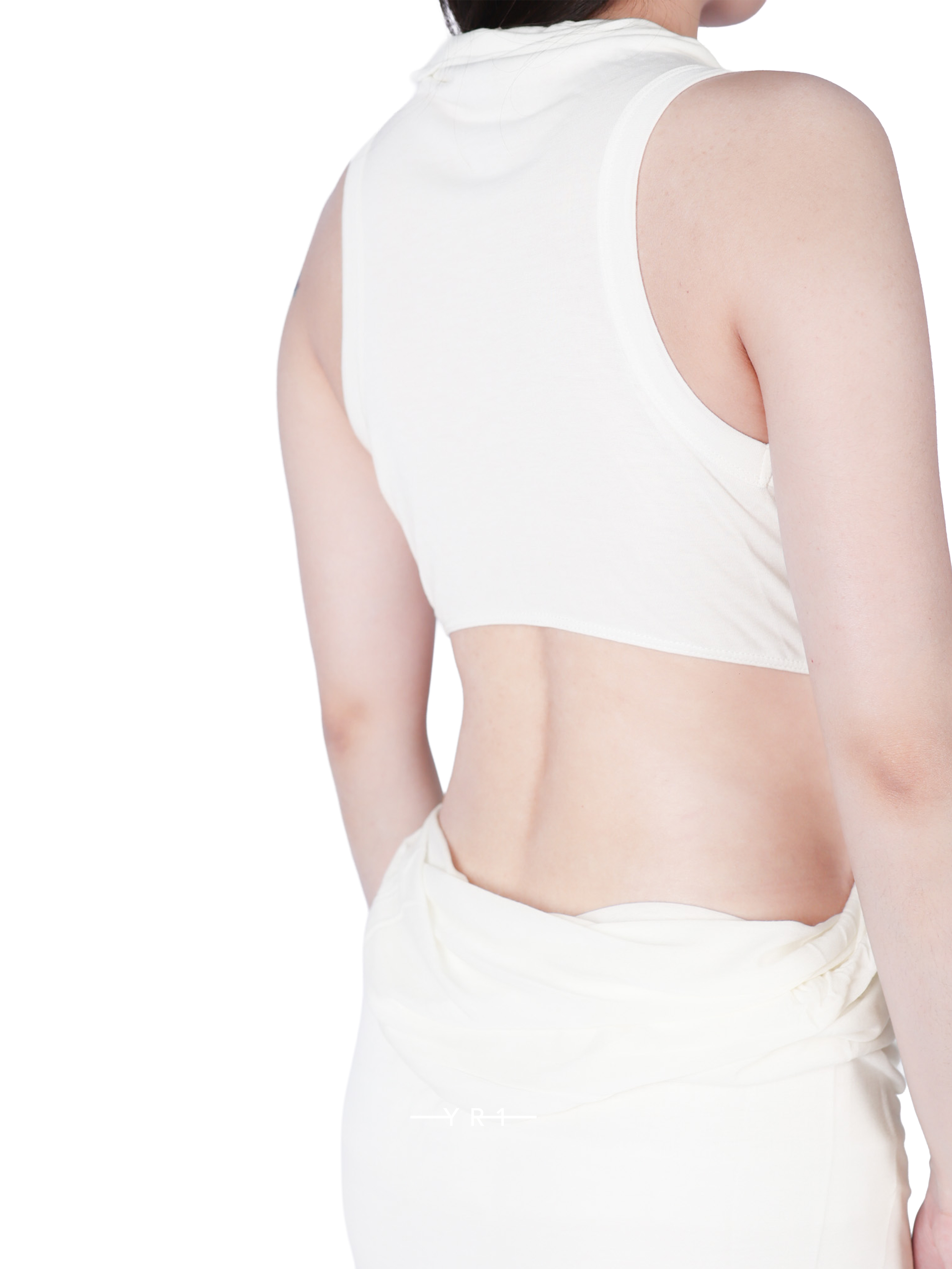 这款无袖垂褶上衣采用轻盈的针织面料,剪裁出柔和的立体轮廓,完美贴合身形。