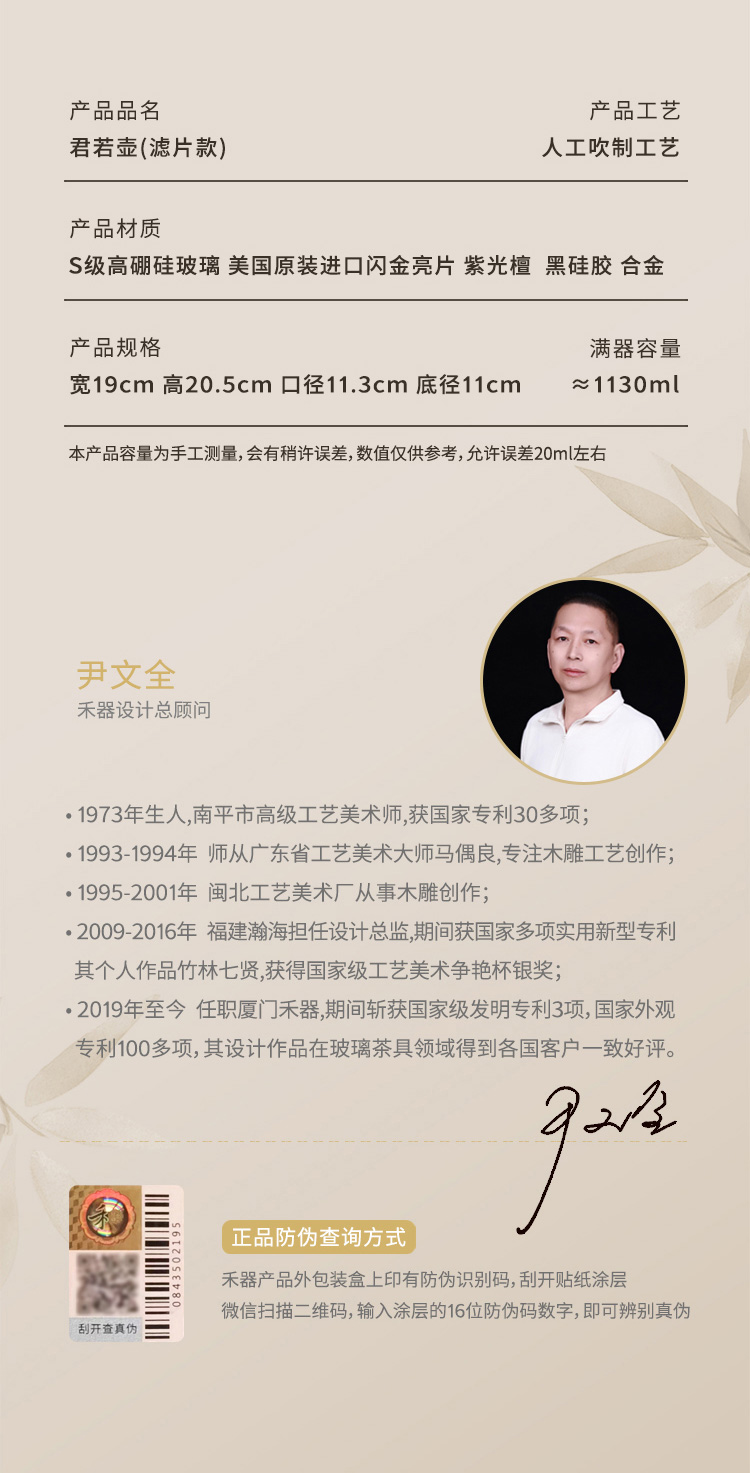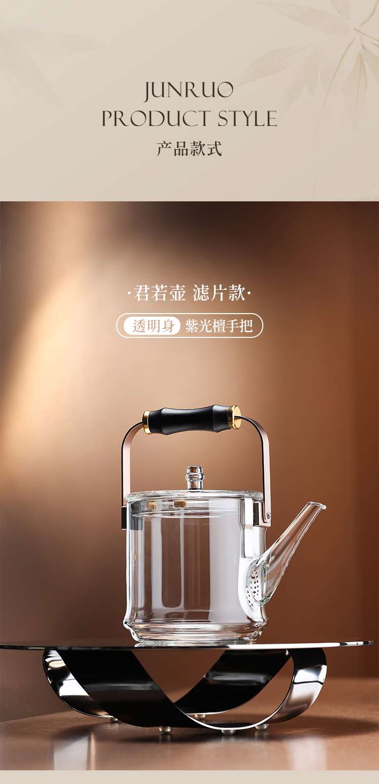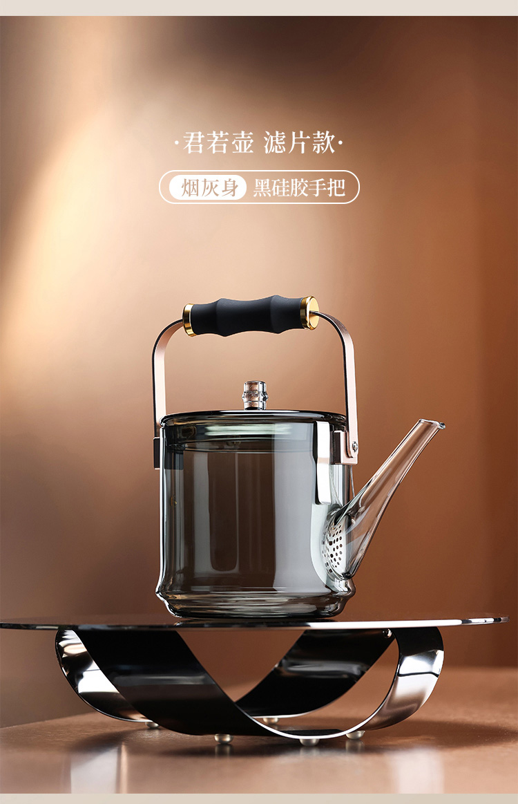 禾器木作·君若壶(滤片款) 煮茶壶高硼硅烧水壶 玻璃煮茶壶高端茶壶