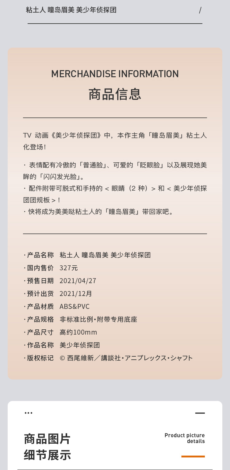 【GSC现货】粘土人 瞳岛眉美 美少年侦探团