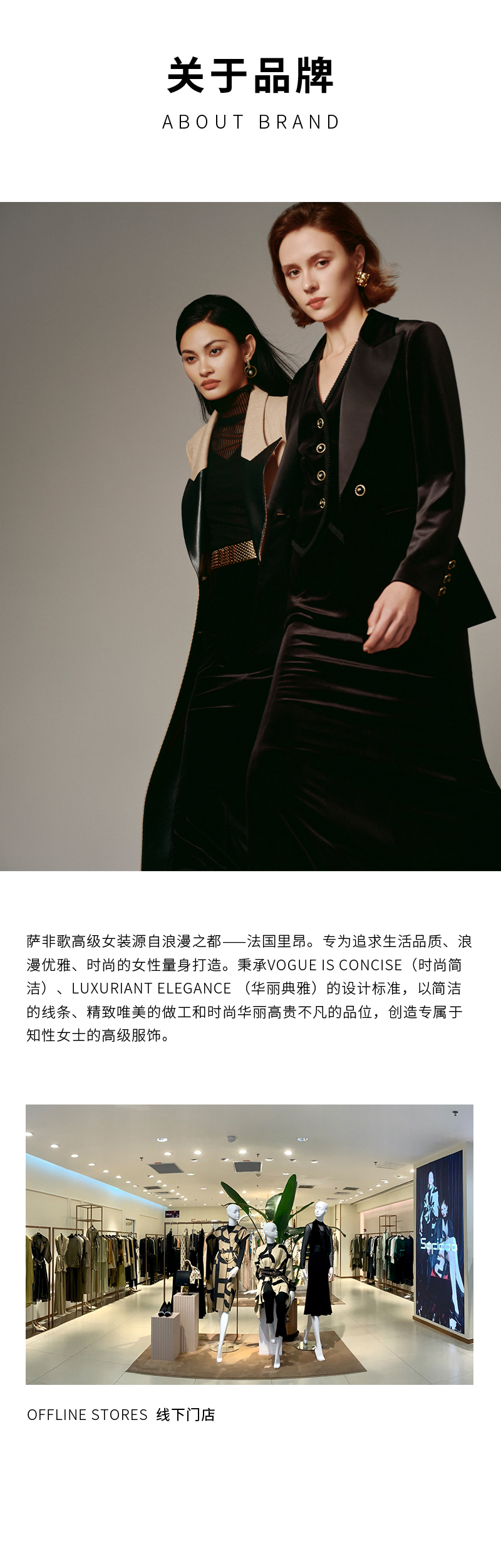 SAFICOO高级女装源自法国巴黎,专为追求品质生活、浪漫优雅的时尚女性量身打造。秉承时尚简洁、华丽典雅的设计标准,以简洁的线条、精精致唯美的做工和时尚华丽、高贵不凡的品位,创造专属知性女士的高级服饰