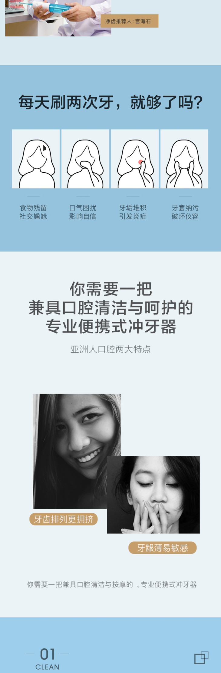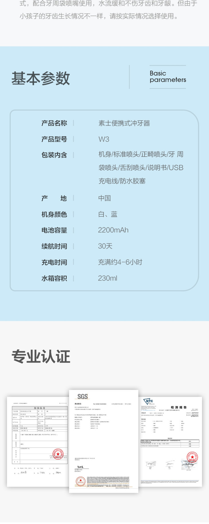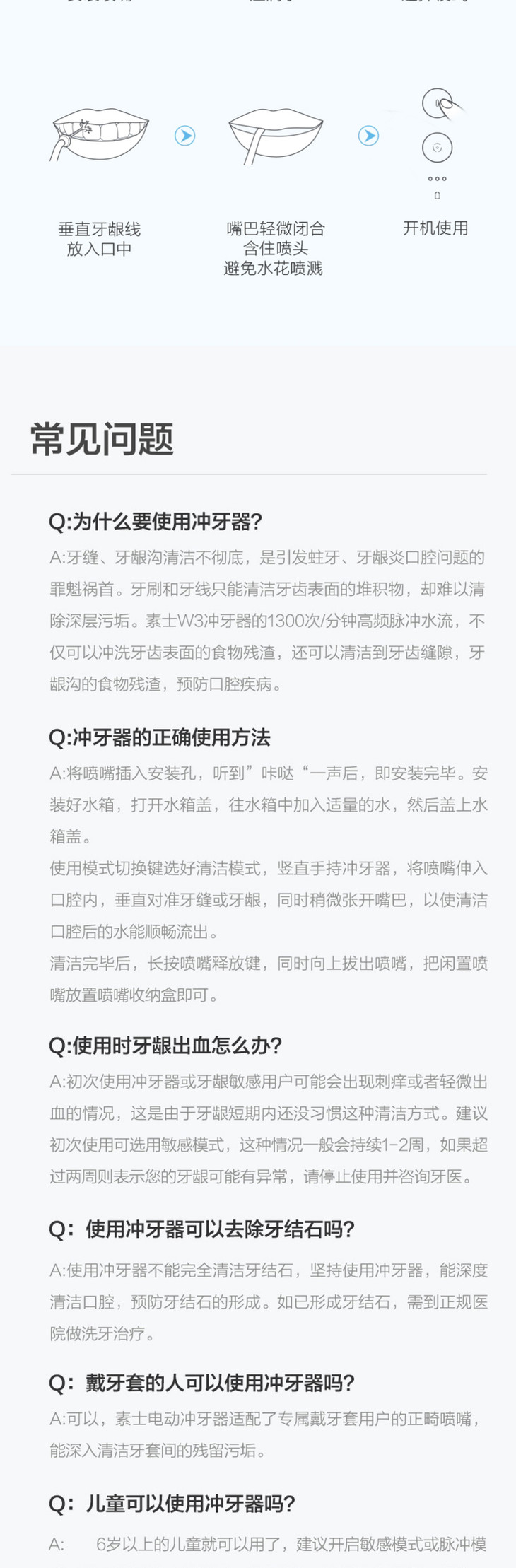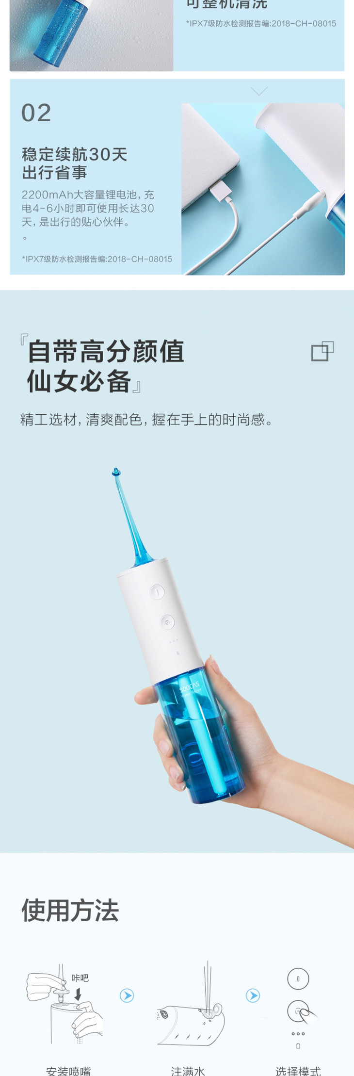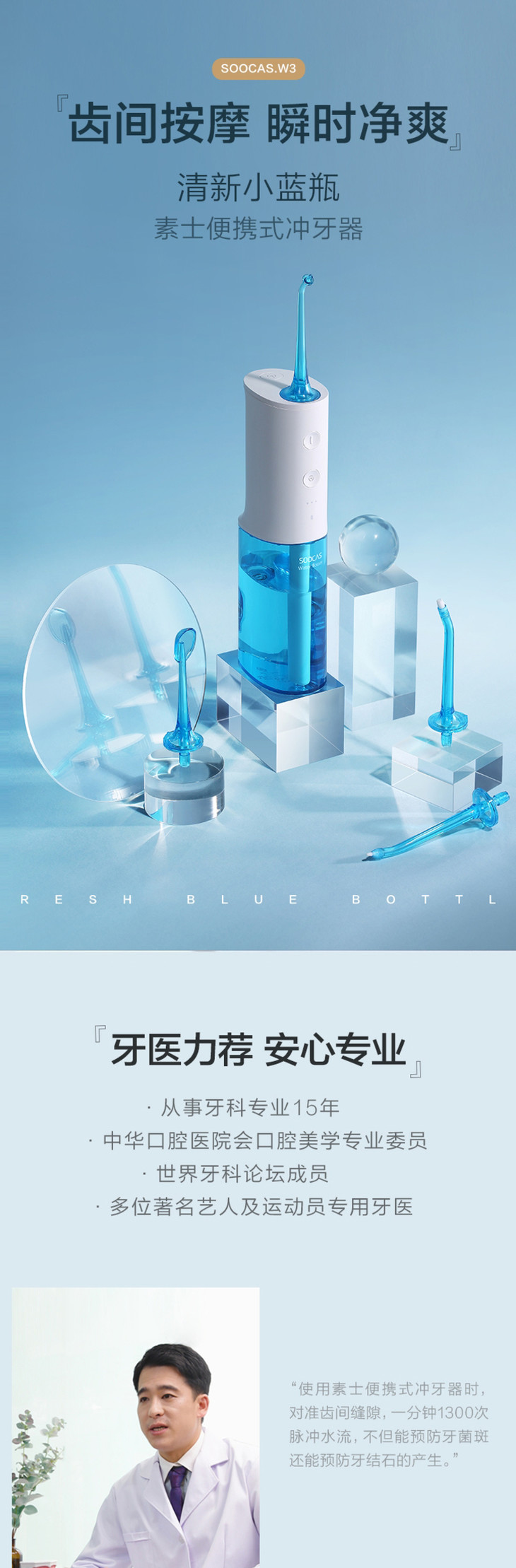 素士W3电动冲牙器便携式洗牙器家用牙结石牙齿清洁神器水牙线