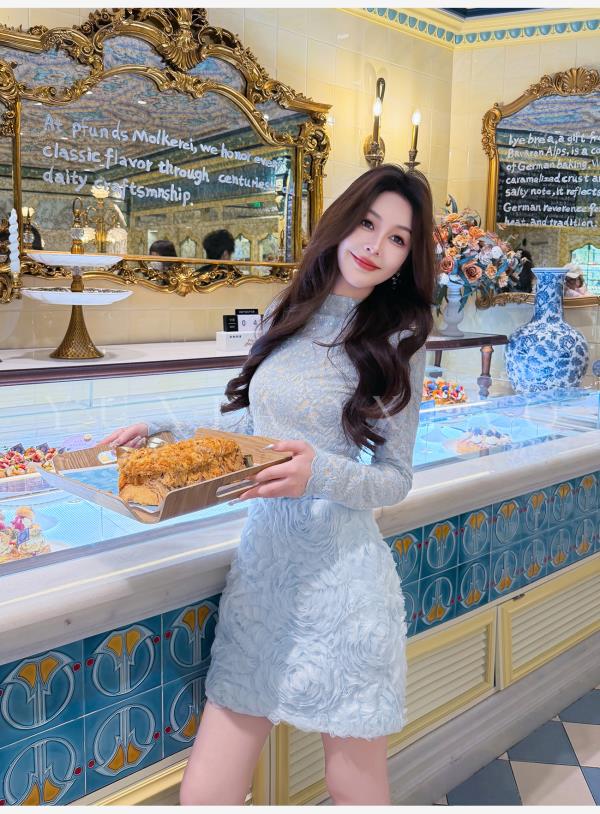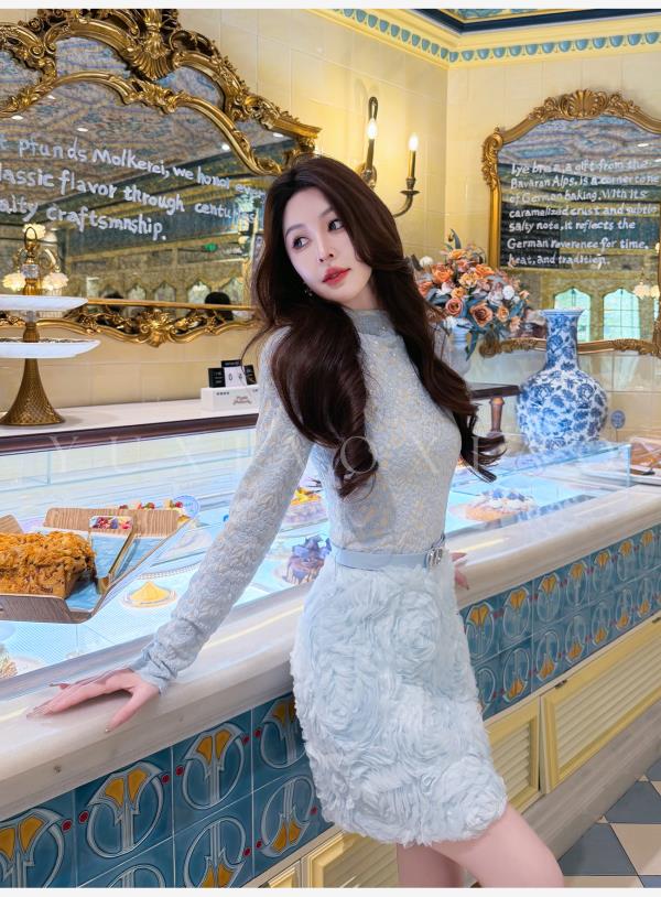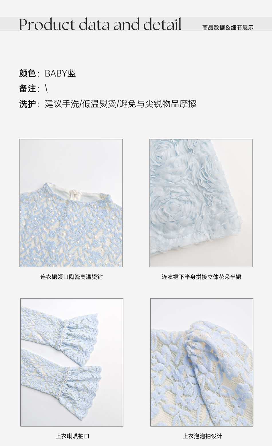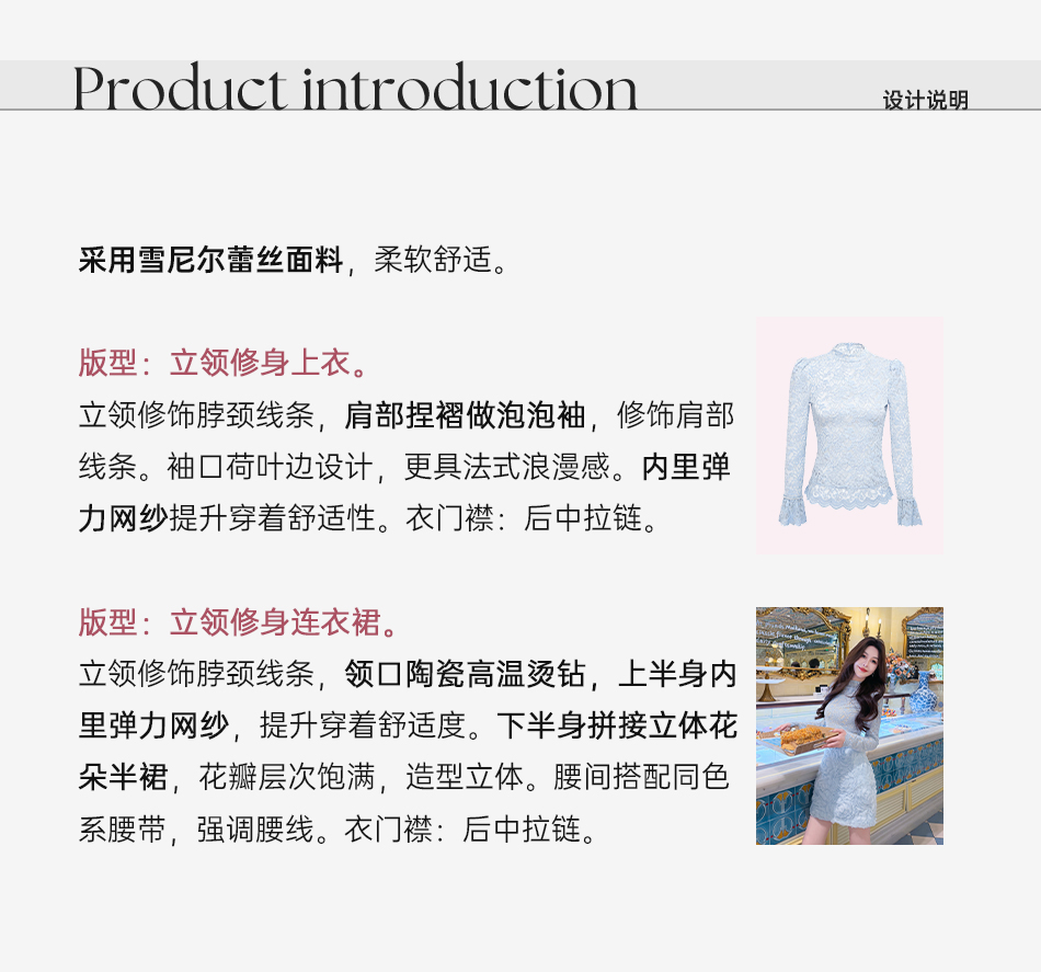 余潇潇【玫瑰往事】气质蕾丝拼接立体花朵修身连衣裙&泡泡袖上衣