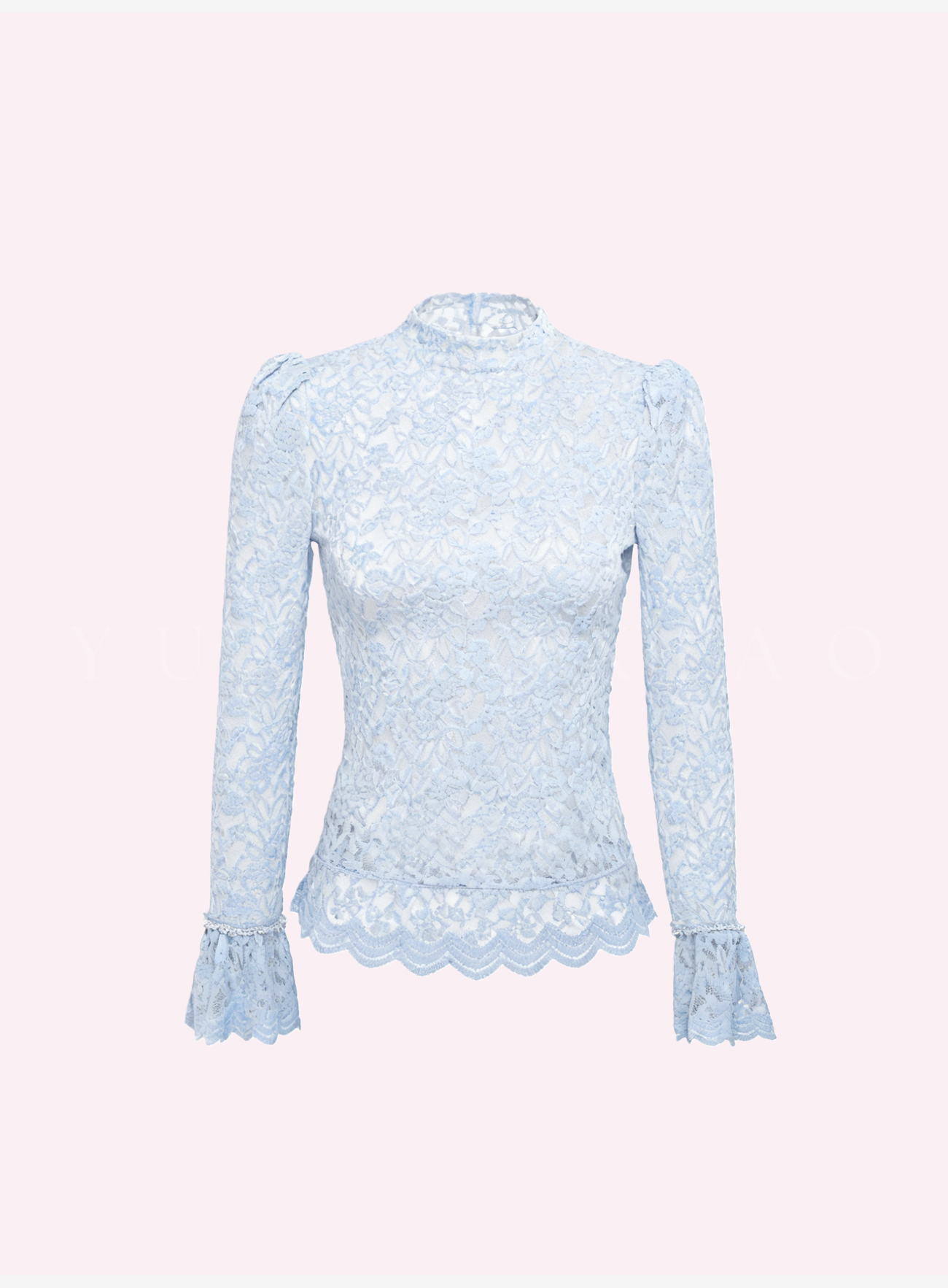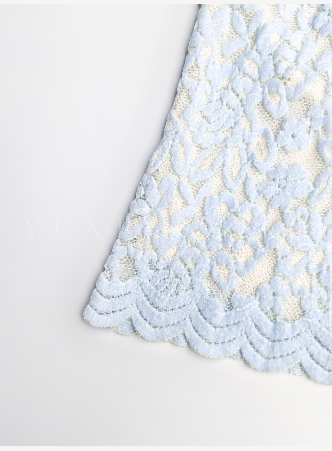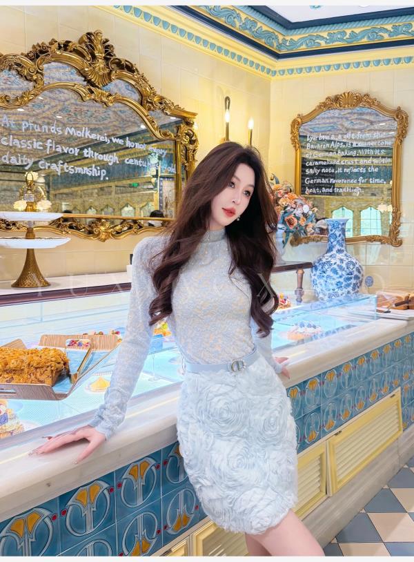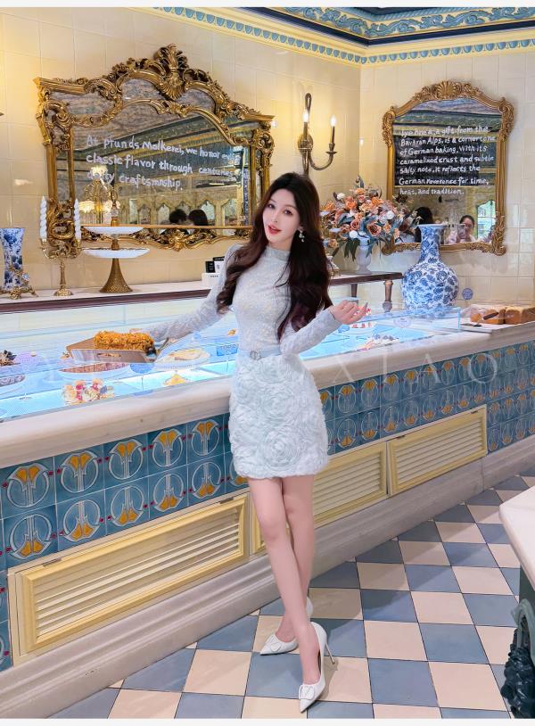 余潇潇【玫瑰往事】气质蕾丝拼接立体花朵修身连衣裙&泡泡袖上衣