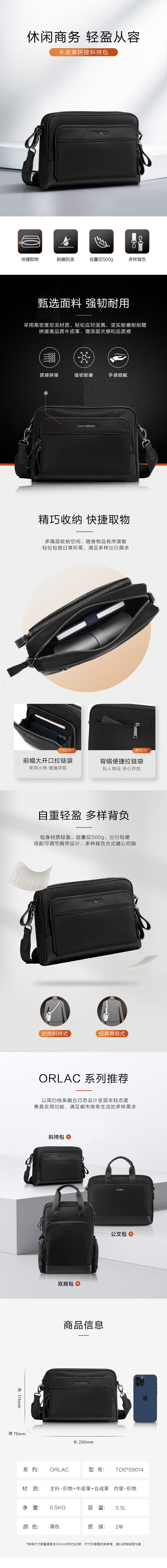 新秀丽ORLAC系列商务休闲单肩包TO0*014