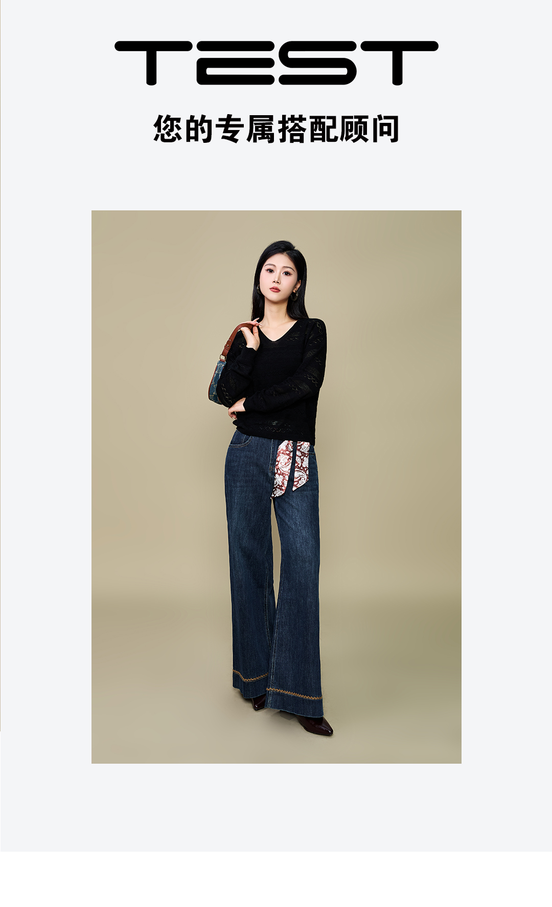 秋上新复古摩登风简约条纹V领针织衫1253100 商品图2