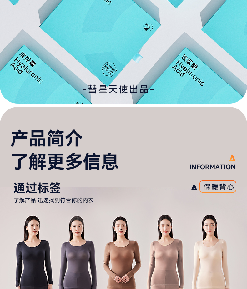 香港【彗星天使】秋冬超薄肌底衣玻尿酸养肤蓄热美肤保暖贴身套装女4199# A-3541