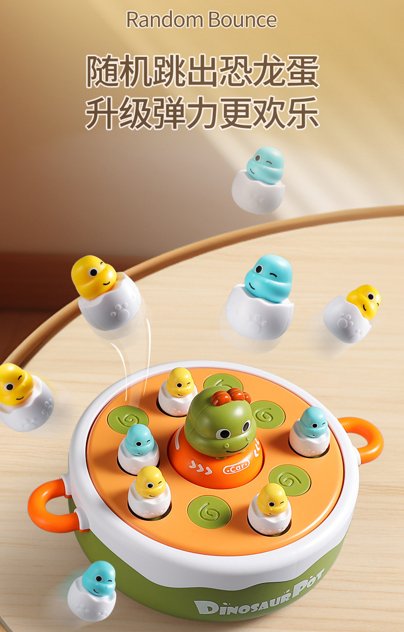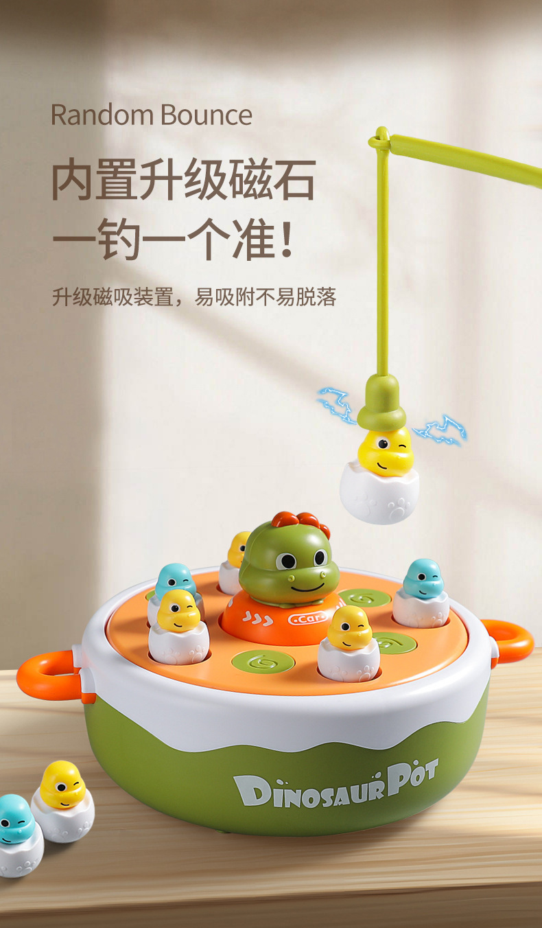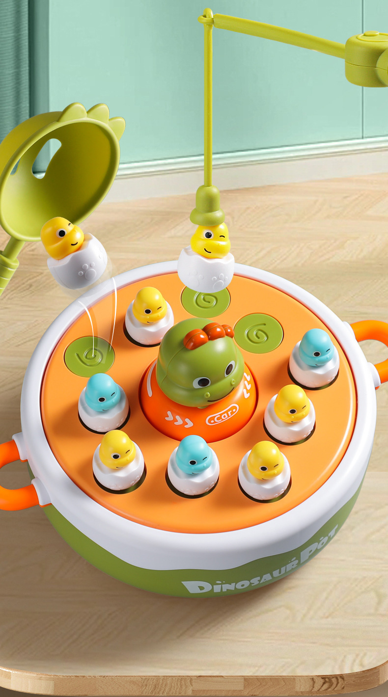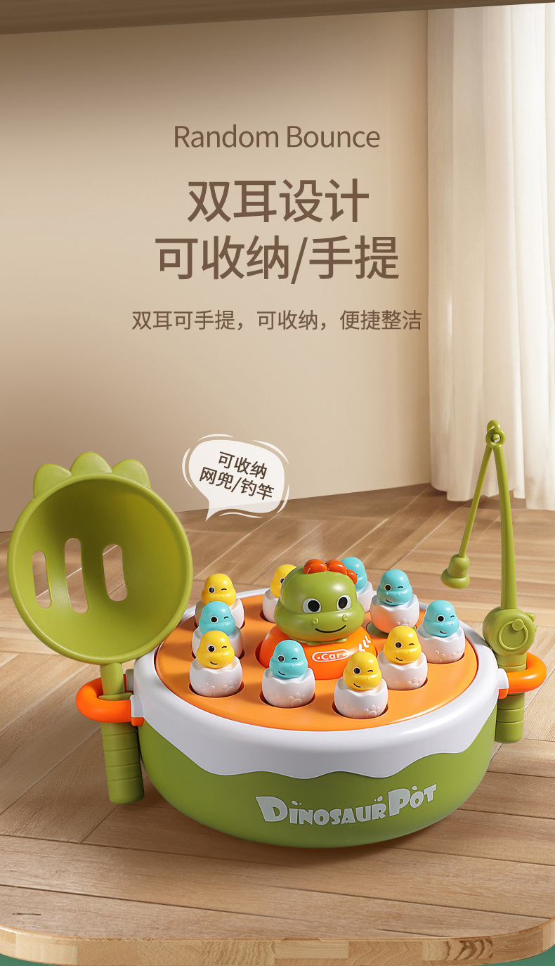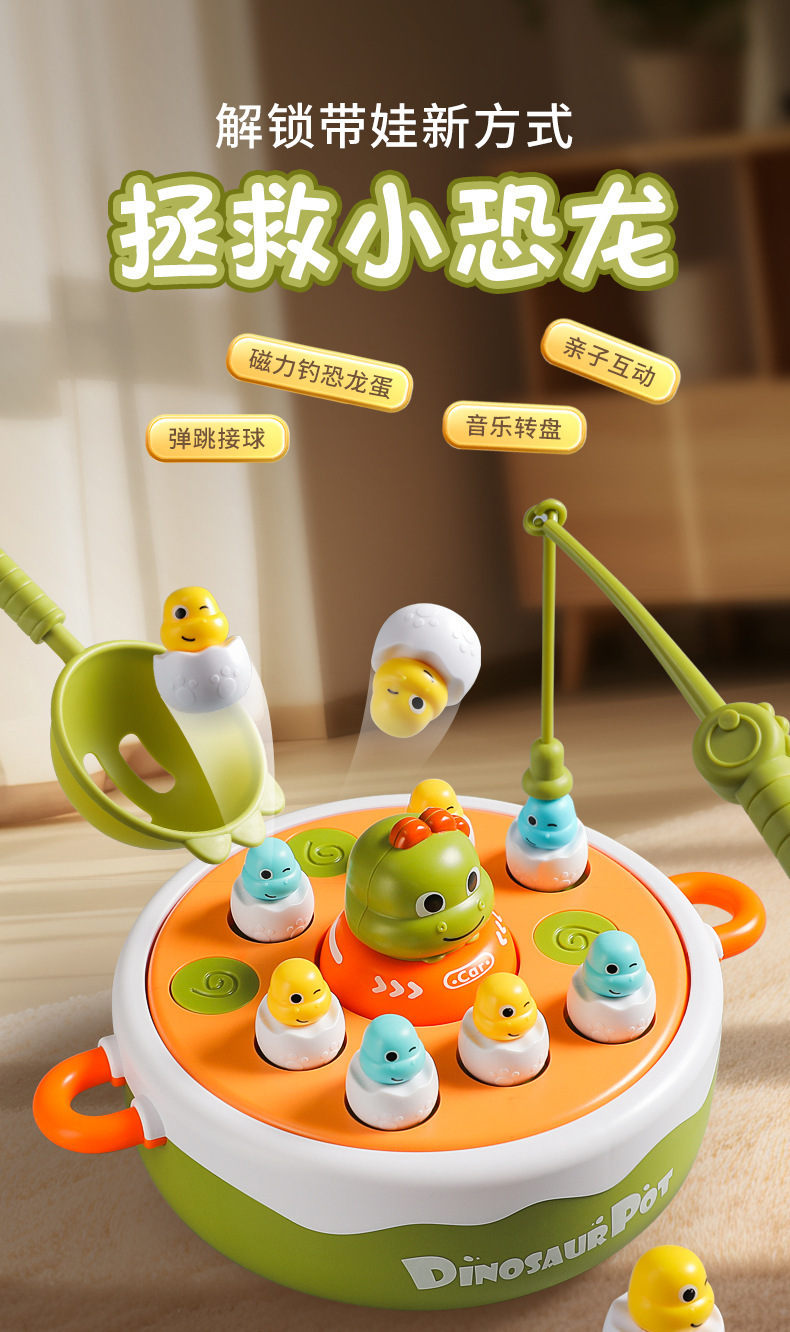 儿童小恐龙弹跳转盘钓鱼玩具 男女孩1-2岁半 3-4岁宝宝益智亲子互动玩具
