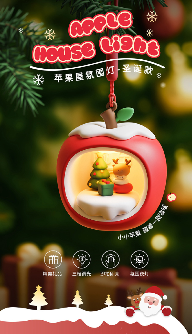 【圣诞礼物】苹果屋氛围夜灯平安夜礼物装饰 挂件拍拍灯卧室伴睡小夜灯