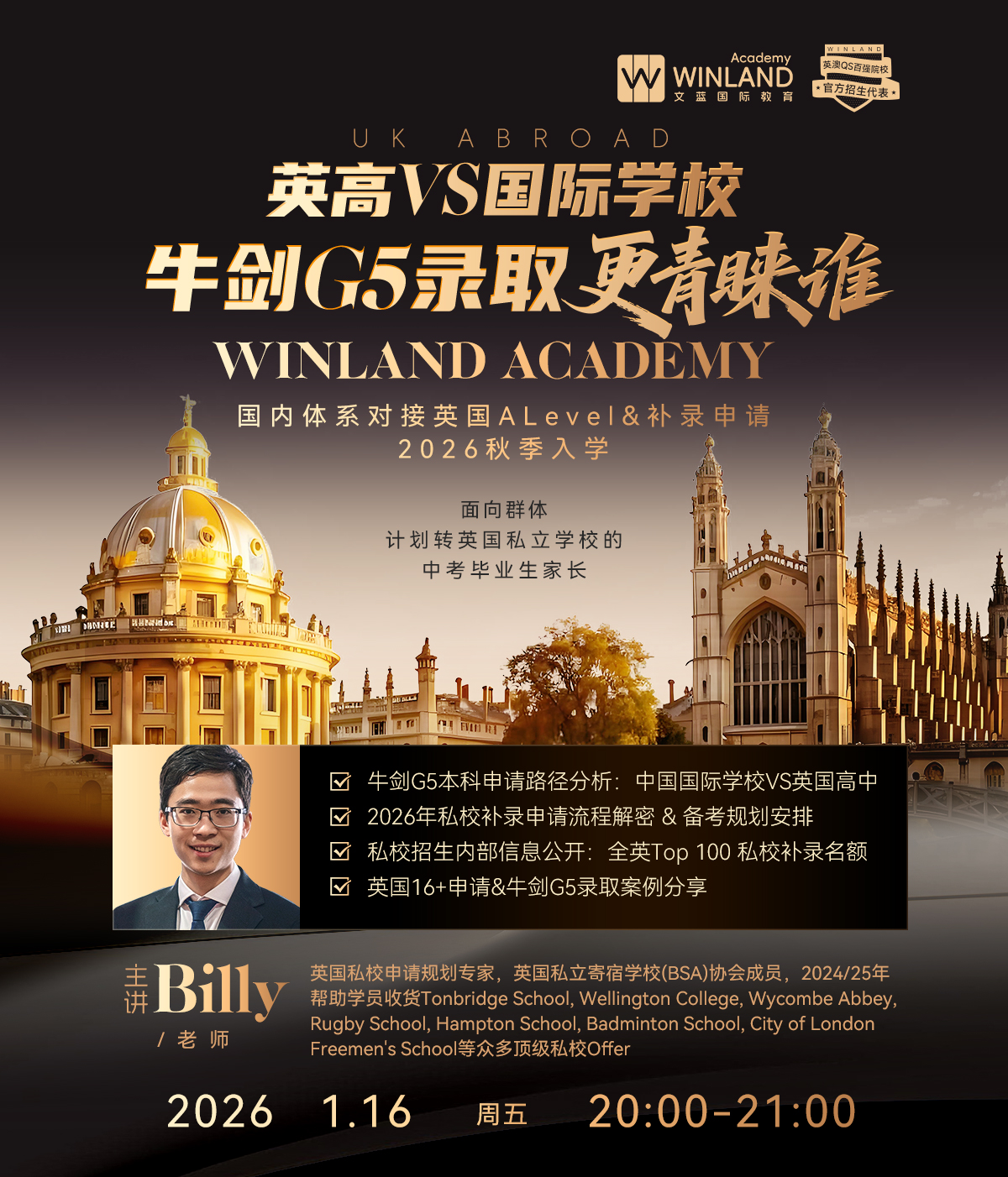 【1.16】英高VS国际学校,牛剑G5录取更青睐谁?国内体系对接英国A-level & 补录申请2026秋季入学!