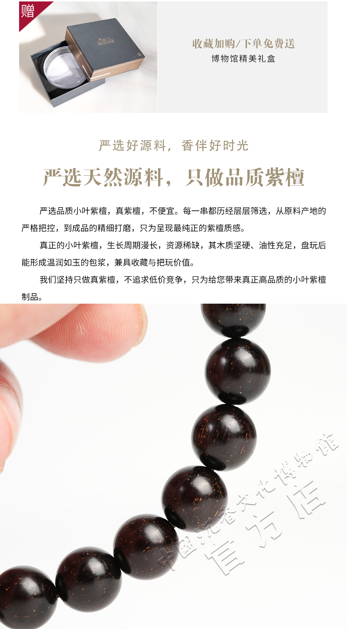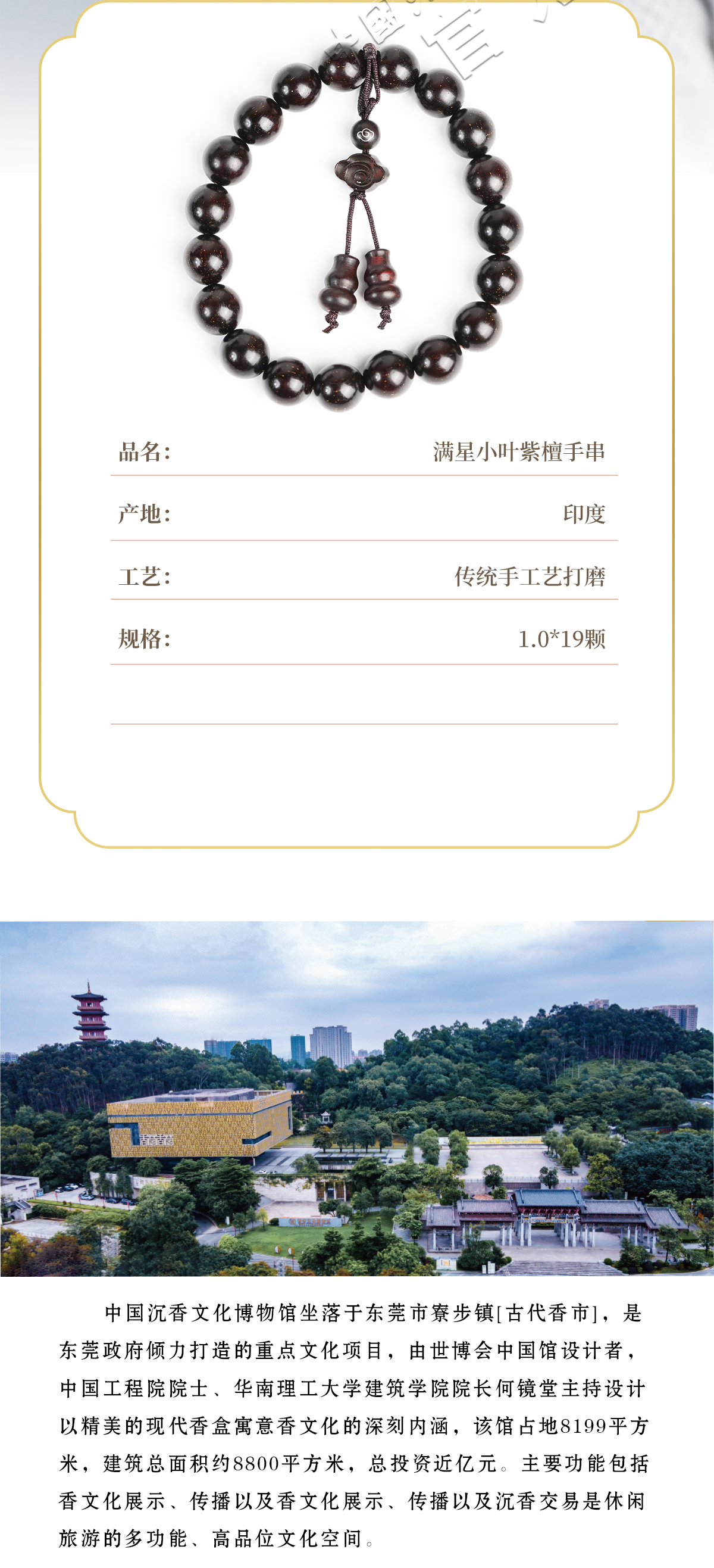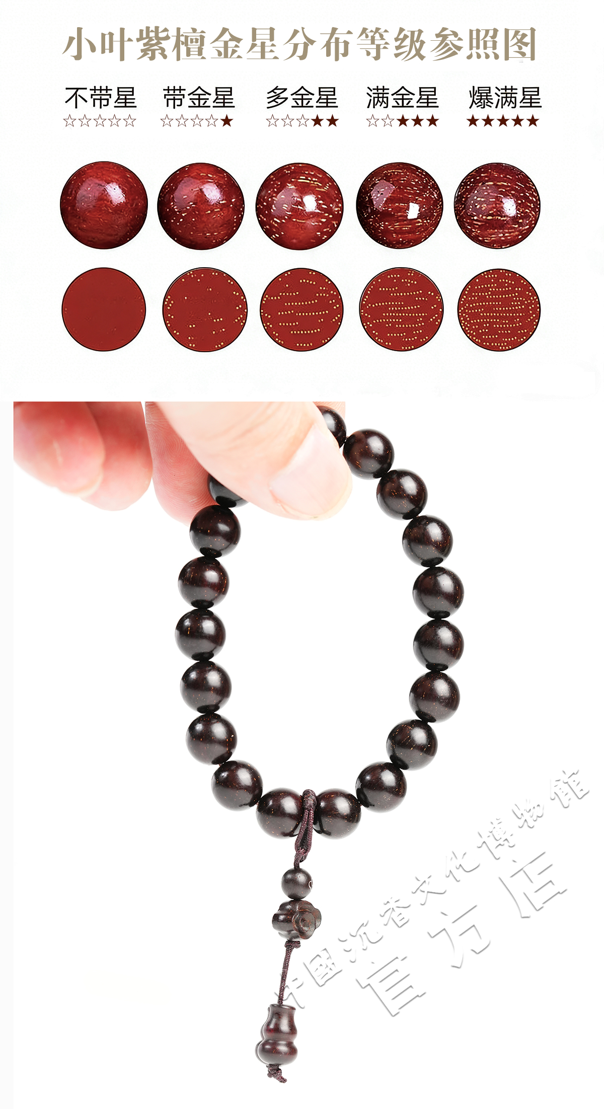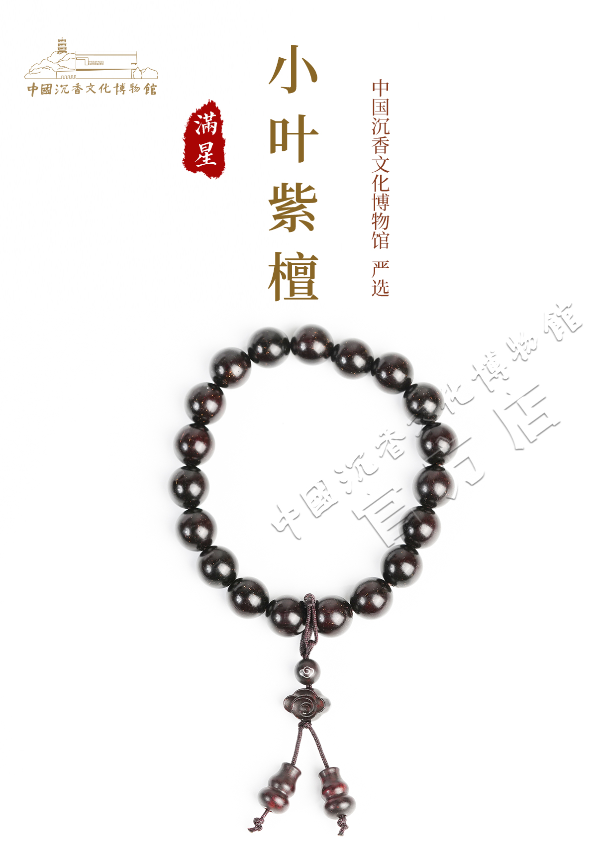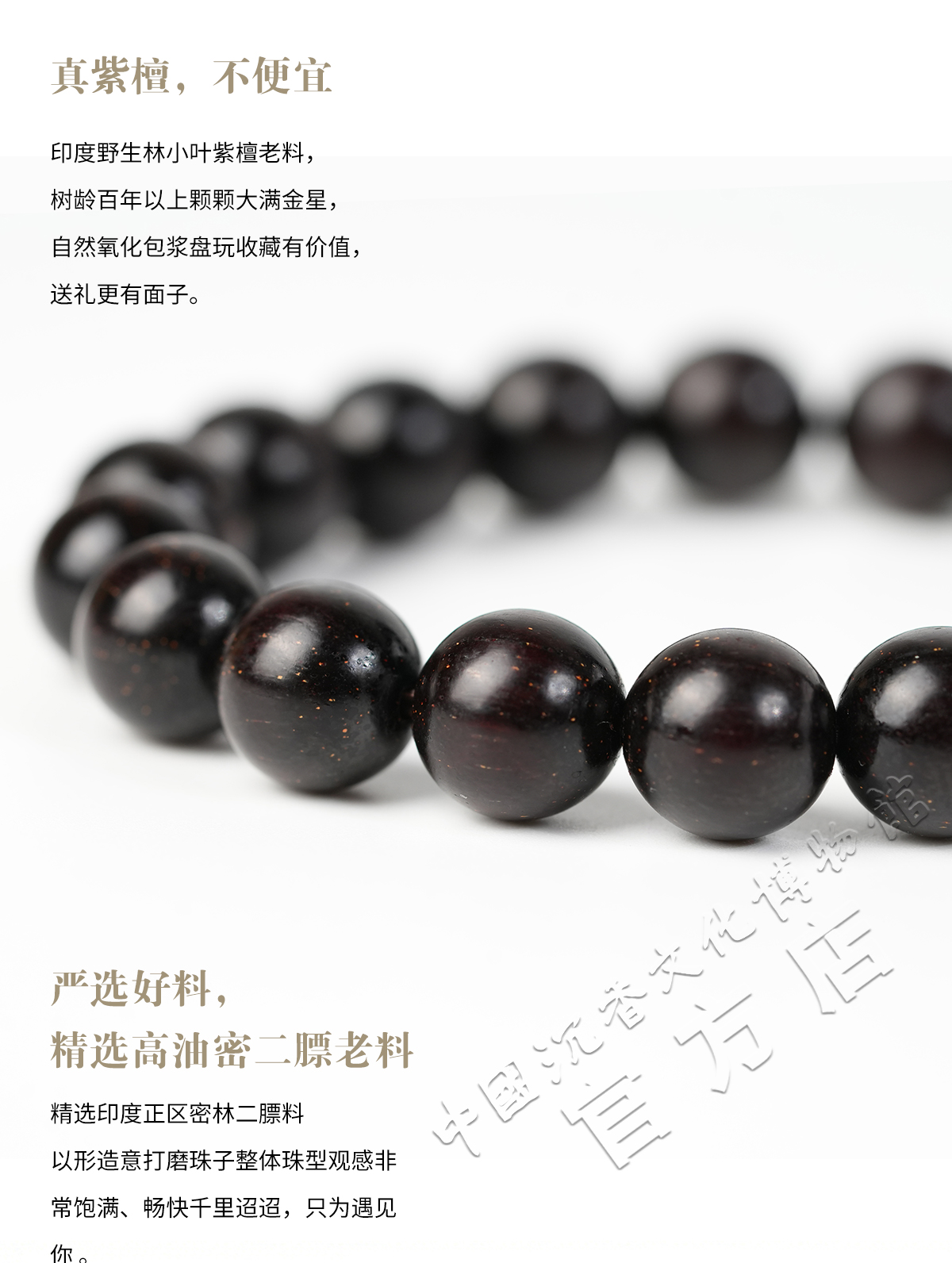 【中国沉香文化博物馆】印度小叶紫檀手串1.0尺寸单圈 满星级别