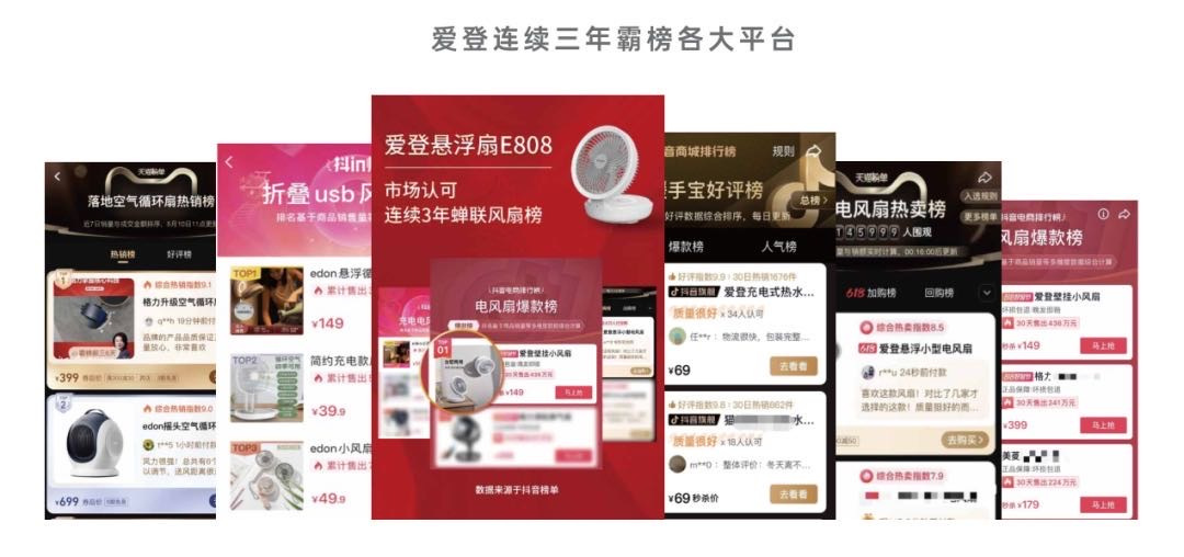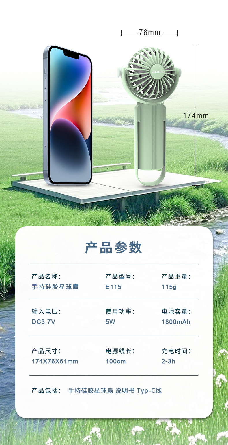 爱登E818万能夹摇头扇、E115手持硅胶星球扇