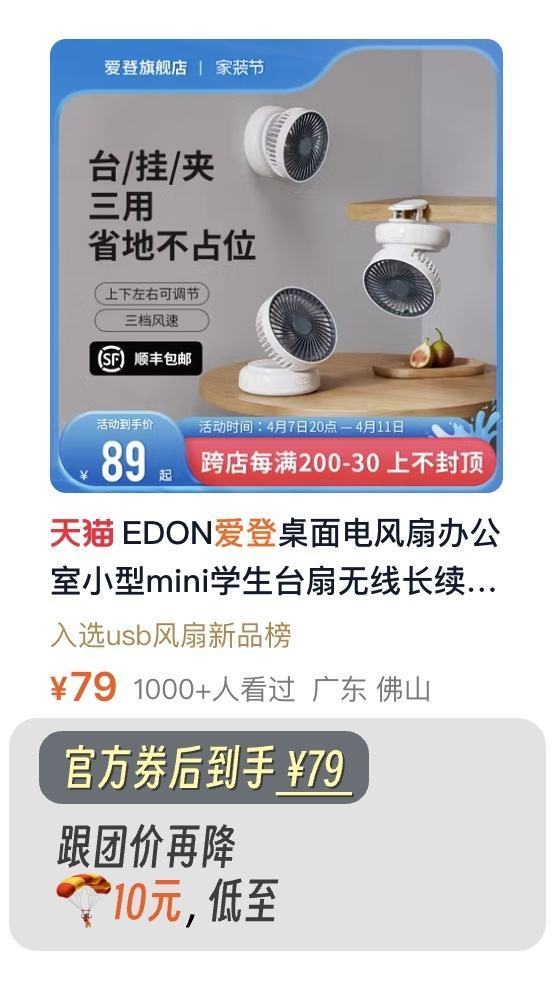 年后发!【品牌直发】出游必备❗山姆同品牌在售❗李佳琦直播间力荐!夏日必备神器🍃 【爱登EDON万能夹摇头电风扇、手持硅胶星球扇】多角度,享清凉💨宿舍、居家、户外百搭✔清凉一夏就靠它了