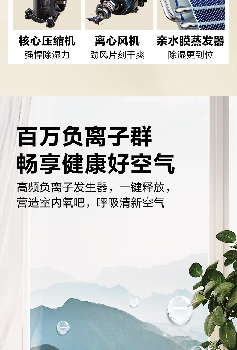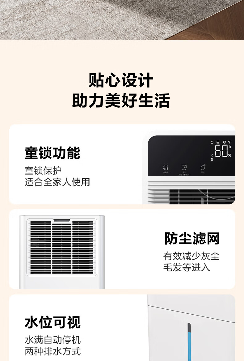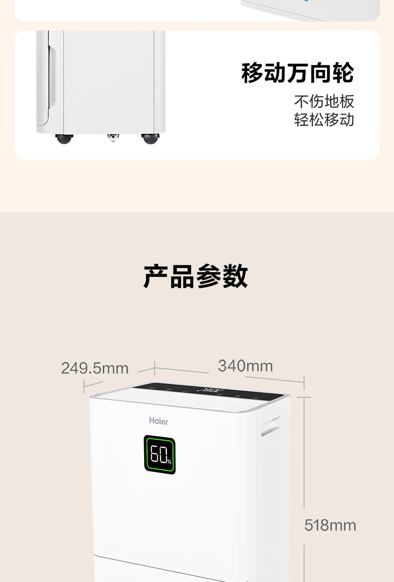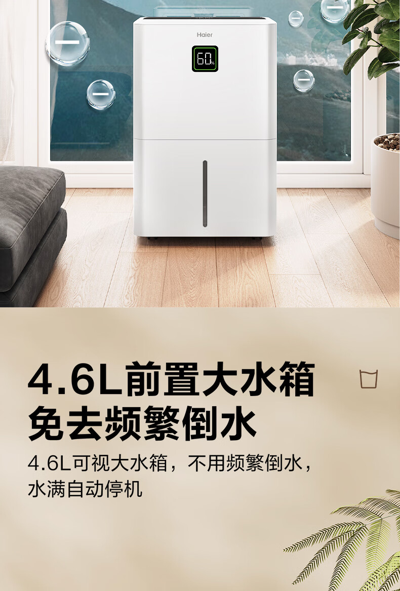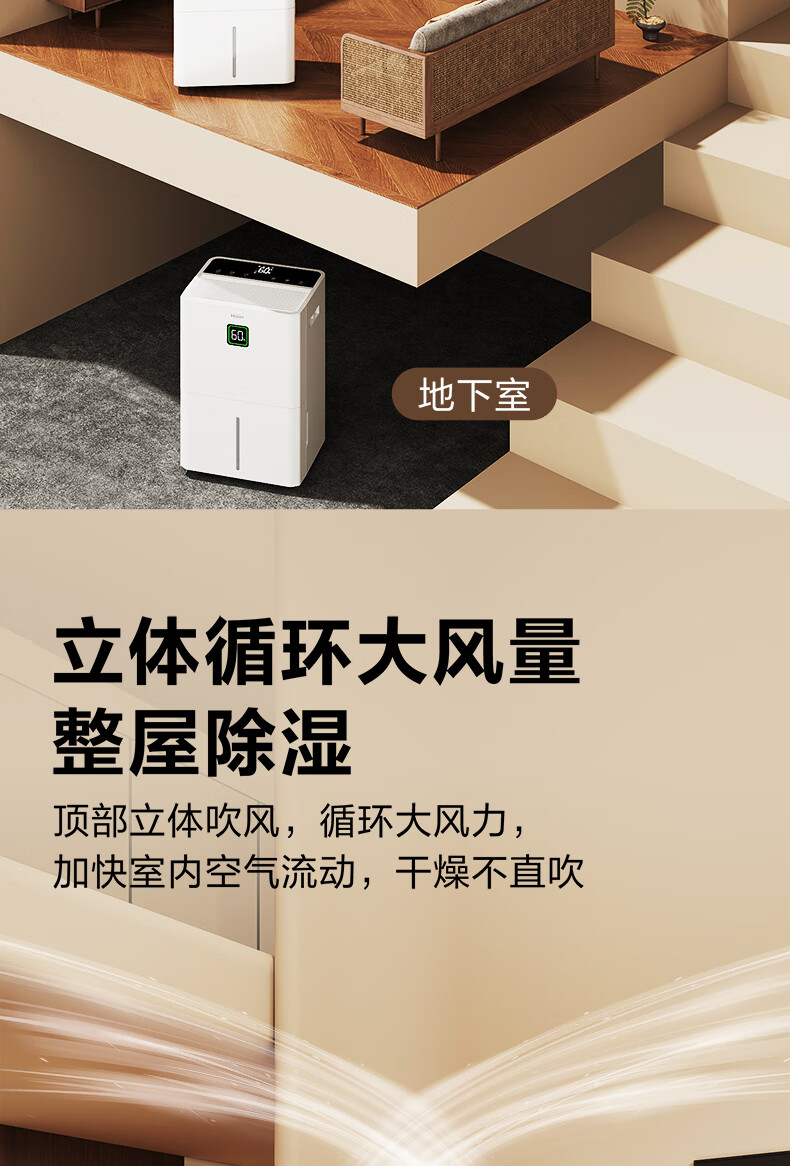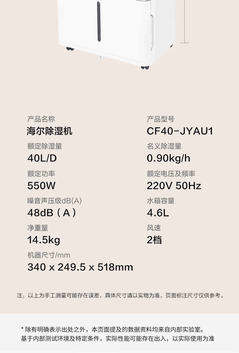 海尔(Haier)除湿机家用地下室带水管排水室内低音可净化干衣压缩机式智能app操控大功率吸湿器CF40-JYAU1