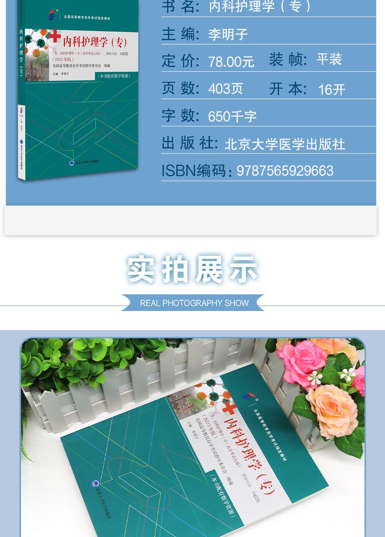 内科护理学(专)2023年版 李明子 主编 含考试大纲 配数字资源 全国高等教育自学考试指定教材 北京大学医学出版社9787565929663