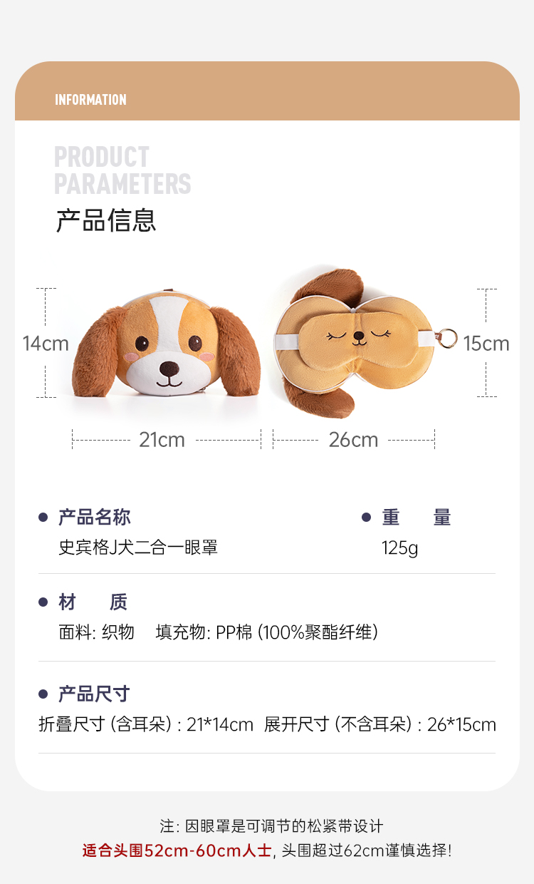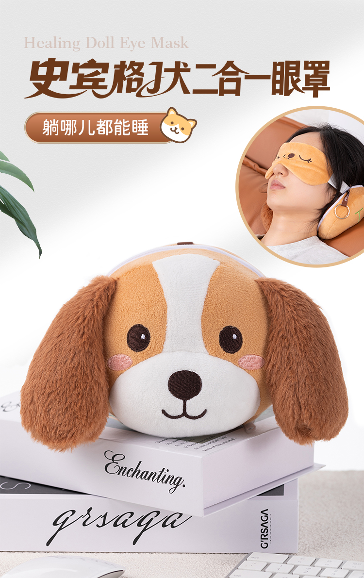 【实付满199送钥匙扣】【史宾格J犬二合一眼罩】创意午睡护眼罩男女卡通睡眠罩/头枕