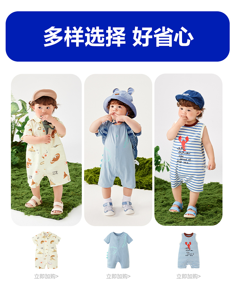 【纯棉亲肤】迷你巴拉外出连体衣男女童宝宝动物造型夏季新款