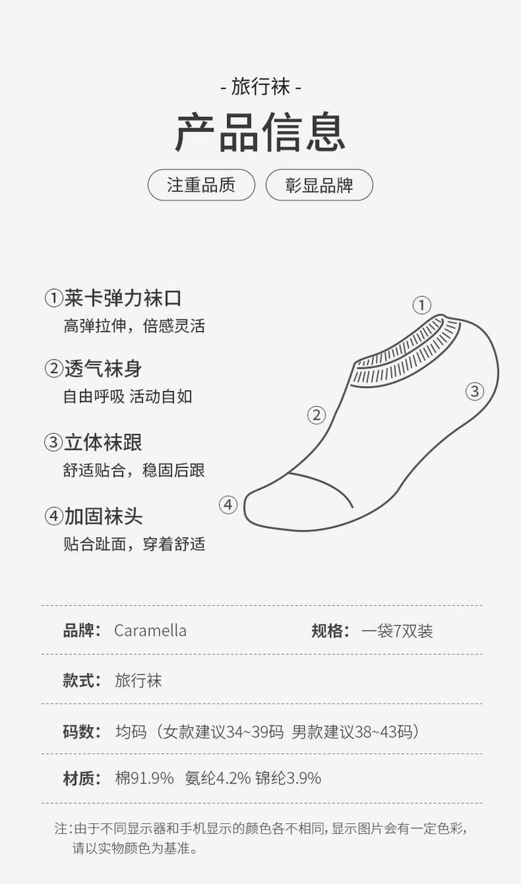 【售后标准】:袜子属于贴身衣物,一经发货不可拒收,介意慎拍!如有质量问题及时反馈客服进行售后保障。