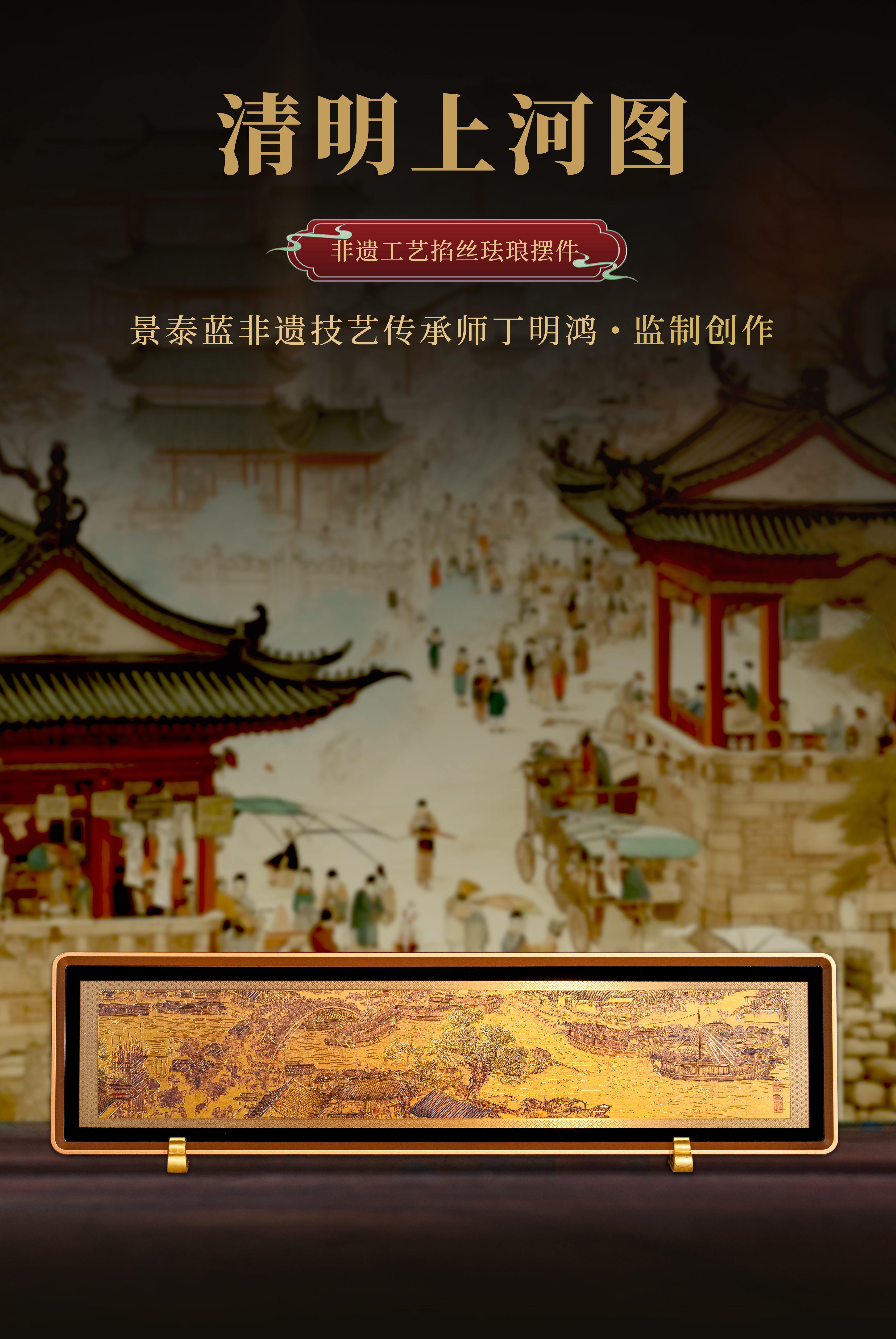《千里江山图》《清明上河图》掐丝珐琅摆件 非遗工艺 画面唯美 装饰|收藏|送礼