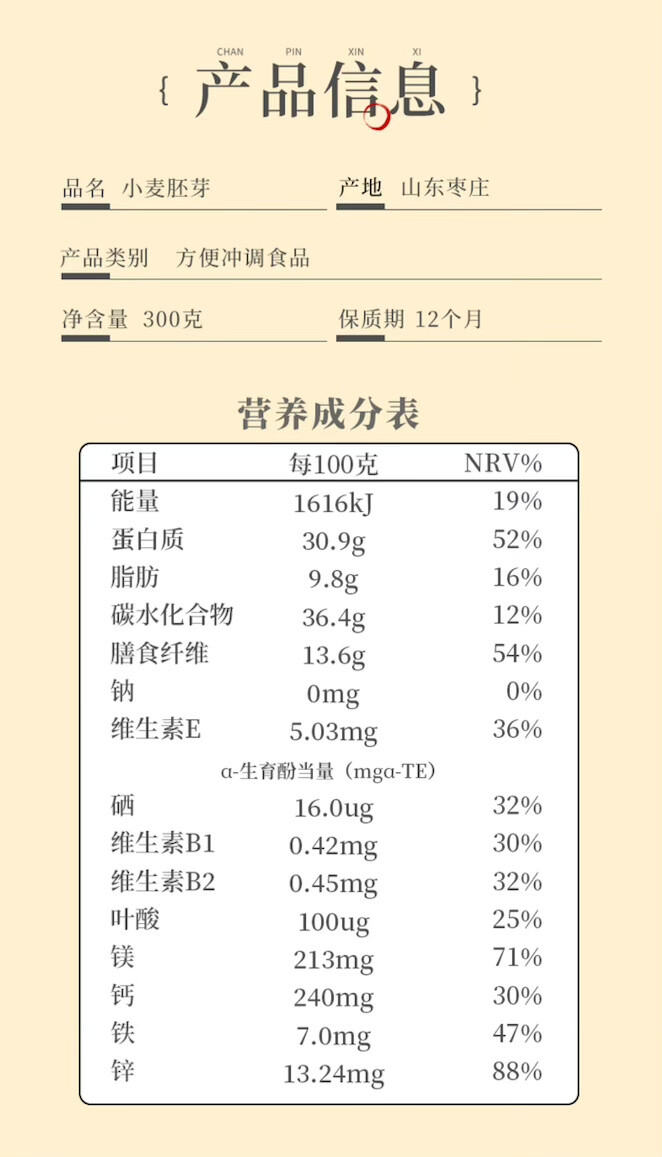 【醒粉福利24.9元5袋】【植物燕窝】东健堂富硒高锌小麦胚芽 300g*5袋(到手3斤)
